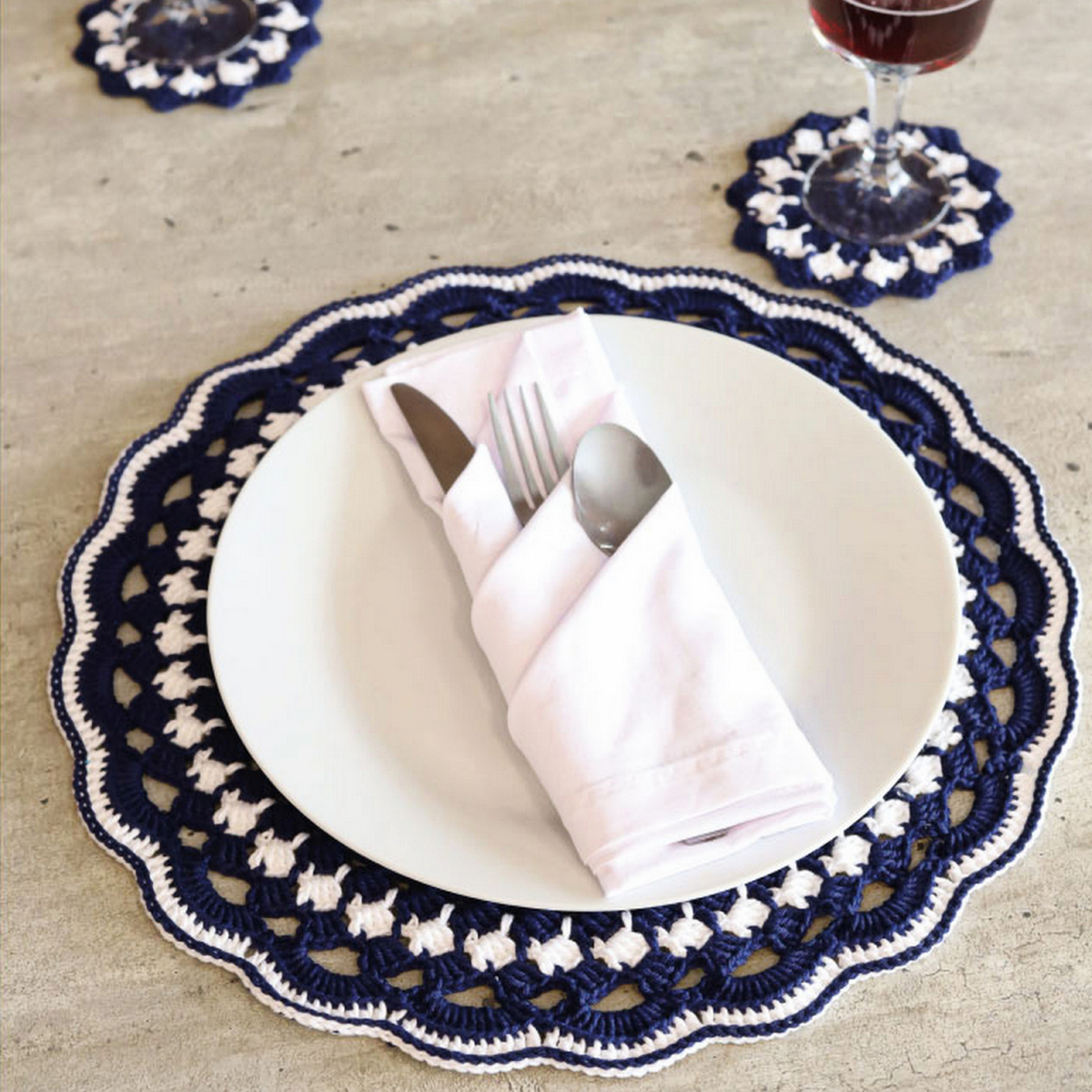 Размер салфетки: 54 см в диаметре.