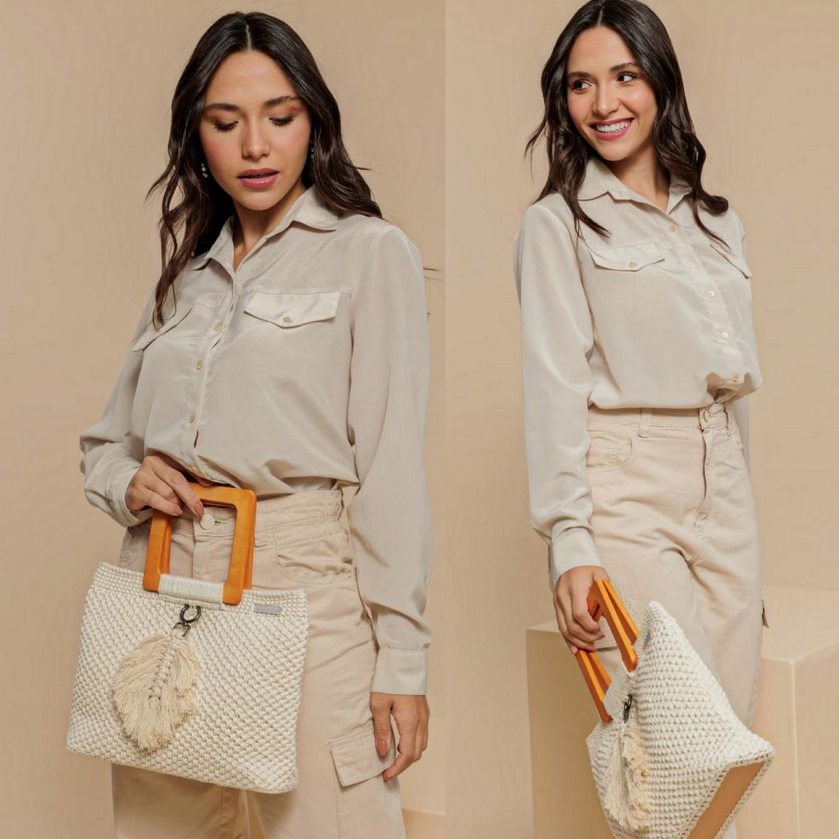 Стильная сумка-шопер натурально-белого цвета, украшенная эффектным «листиком» (как сделать такой декор, видео ниже). Элегантный образ дополняют квадратные ручки из вишнёвого дерева. Размер шоппера 24 х 34 см.
