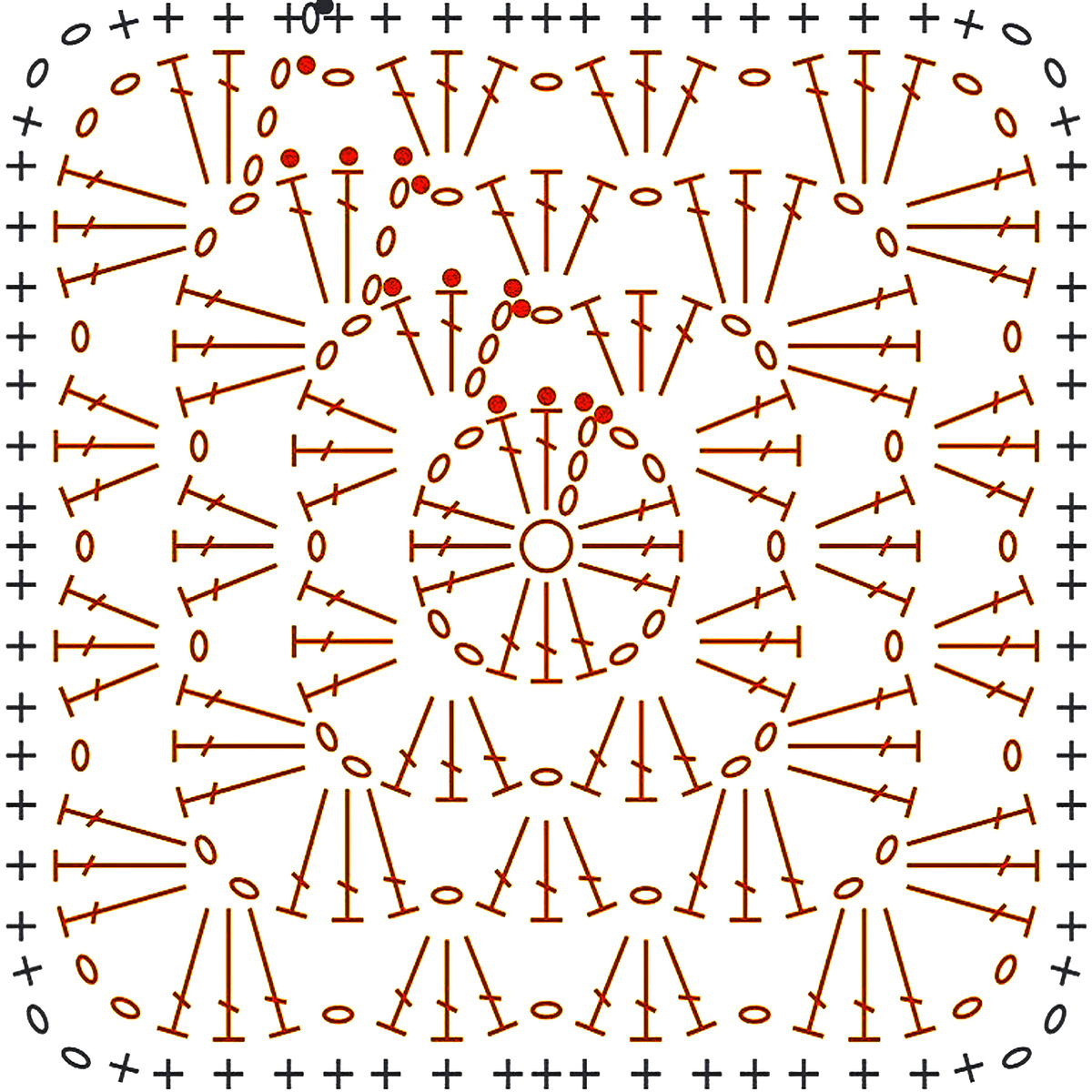 Для вязания нам понадобится 2 мотка натурально-белой пряжи и 3 мотка красной меланжевой пряжи: 100% мерсеризованный хлопок; 100 гр — 115 м. Крючок № 5.
