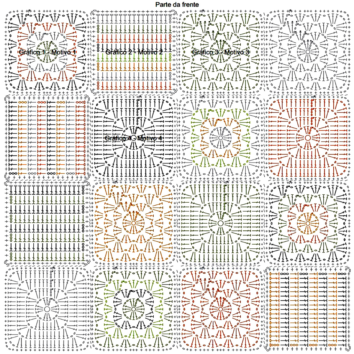 Для вязания нам потребуется по 1 мотку зелёной, терракотовой, горчичной, белой, салатовой пряжи и 2 мотка серой пряжи: 100% мерсеризованный хлопок; 50 гр — 135 м. Крючок № 3.