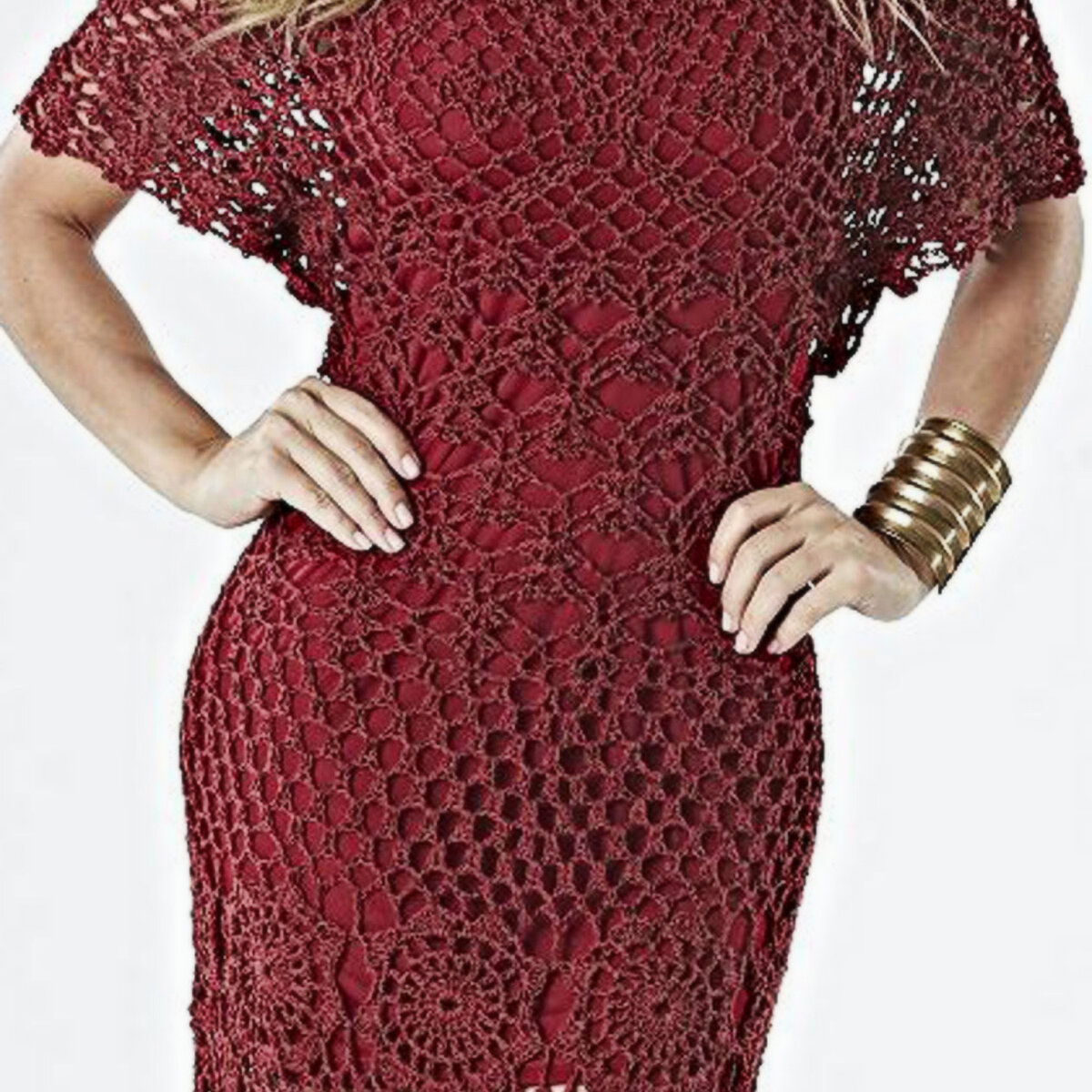 Для вязания нам потребуется 15 мотков — на размер 44-46 — бордовой пряжи: 100% вискоза; 50 гр — 150 м. Крючок № 2,5-3.