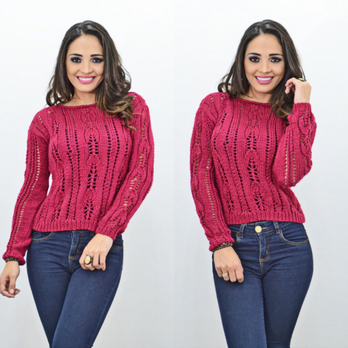 Эффектный красный джемпер — укороченная модель выше талии с неглубоким круглым вырезом и спущенными узкими рукавами на резинке-манжете. Кроп-модели всё ещё на пике популярности!