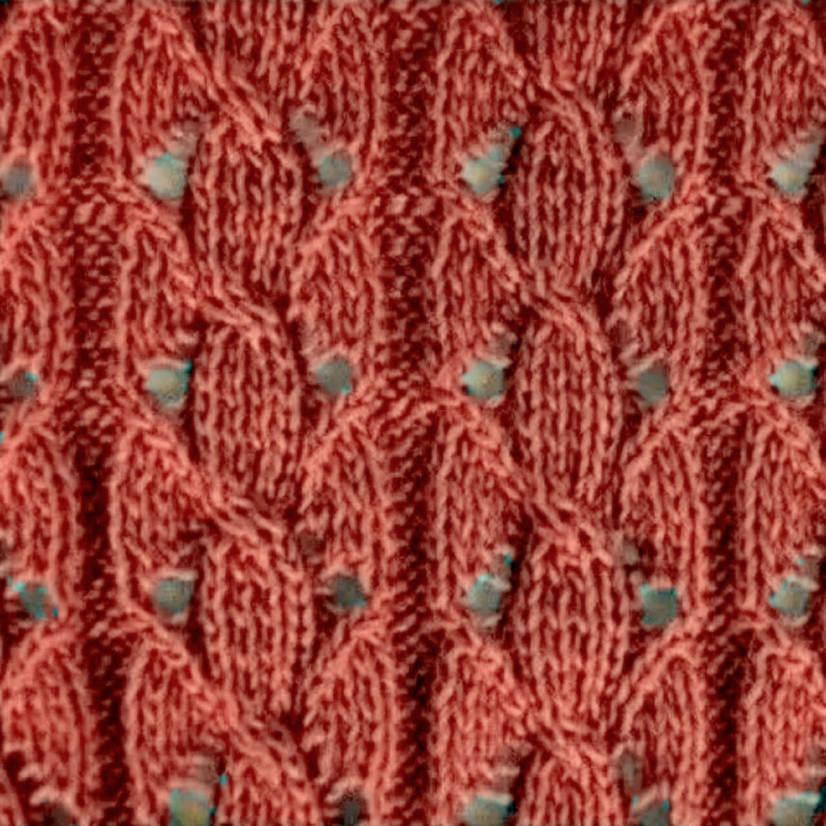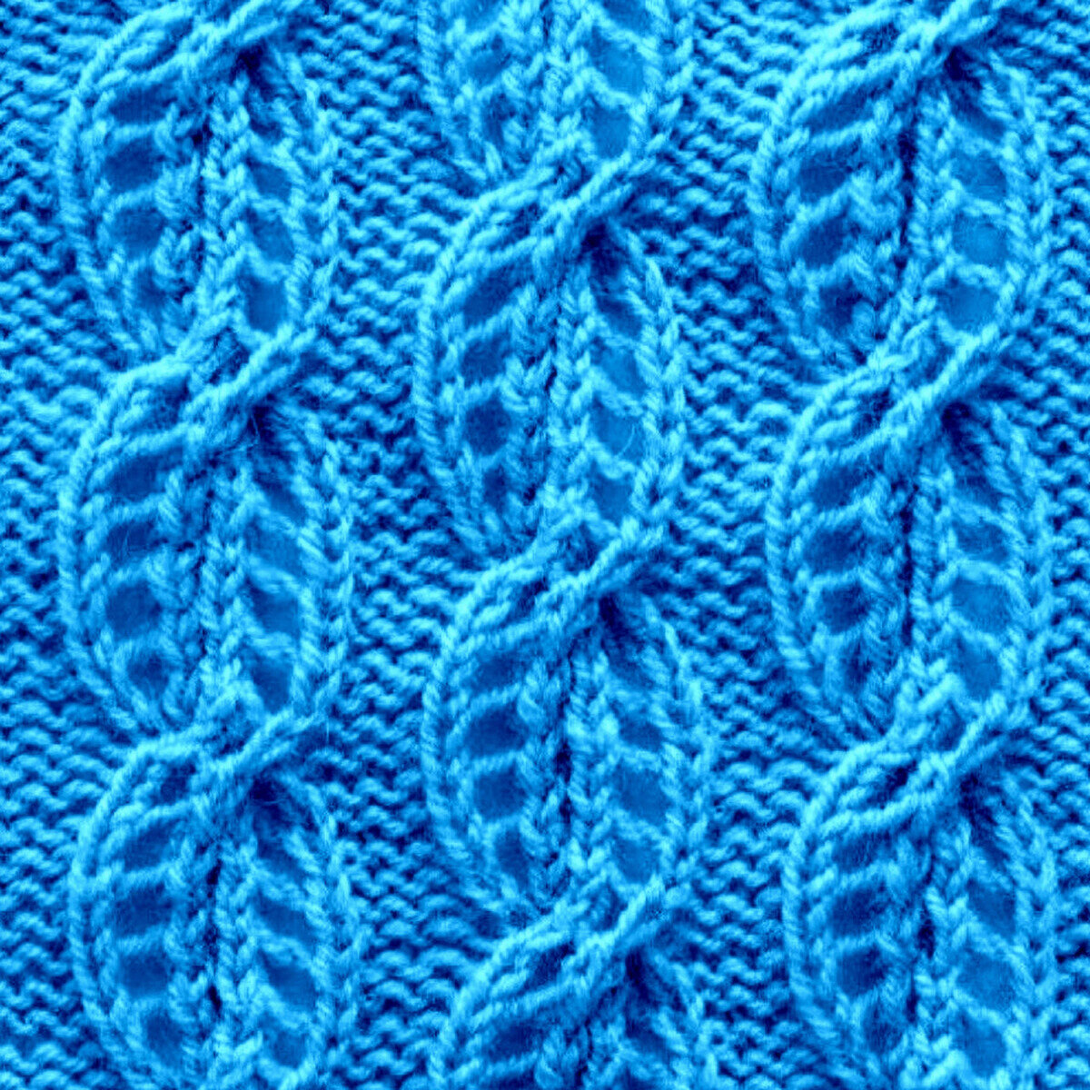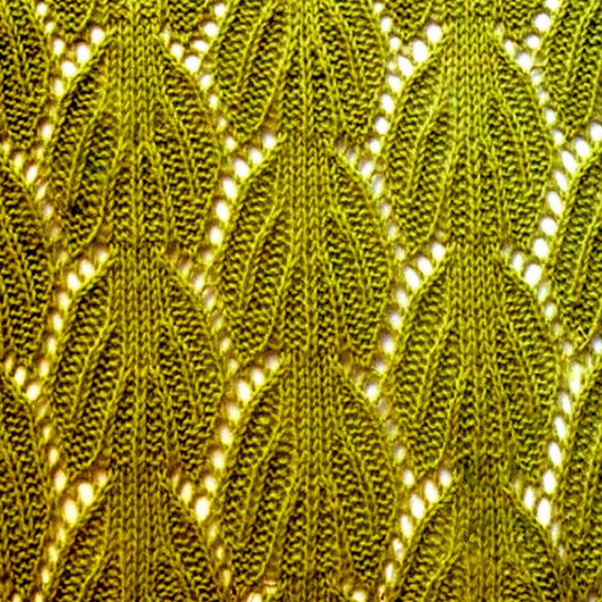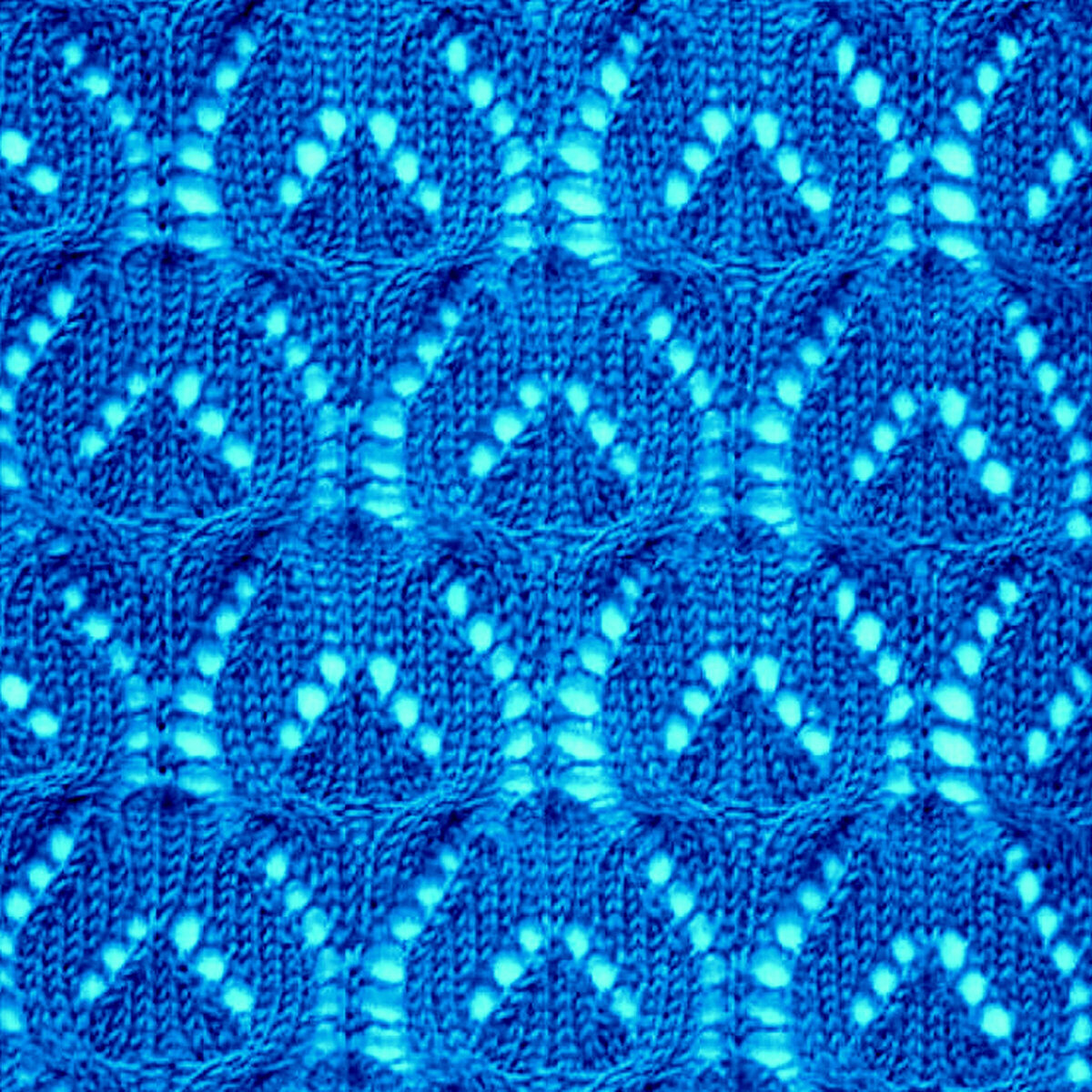 Ажурный узор, напоминающий крупные листья с прожилками. Такой эффект достигается за счёт чередования лицевых и изнаночных петель. По этой же причине узор будет немножко стягивать, несмотря на ажур.