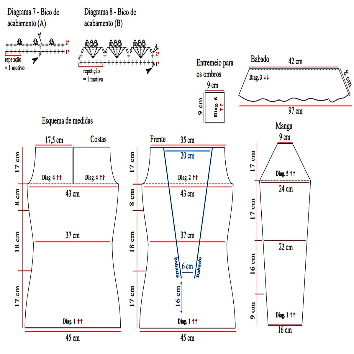 На оригинальной модели бусины идут только впереди и на рукавах, спинка вяжется без них. Вы можете сделать так, как вам больше нравится. Для вашего удобства я указала на схеме место, где нужно пришить/ввязать бусину.