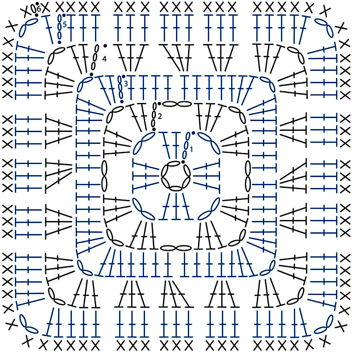 Подобрала для вас много разных интересных и несложных вариантов вязания квадратного мотива крючком.