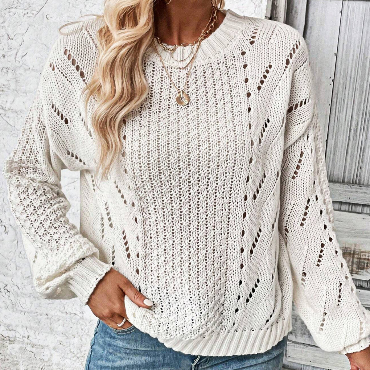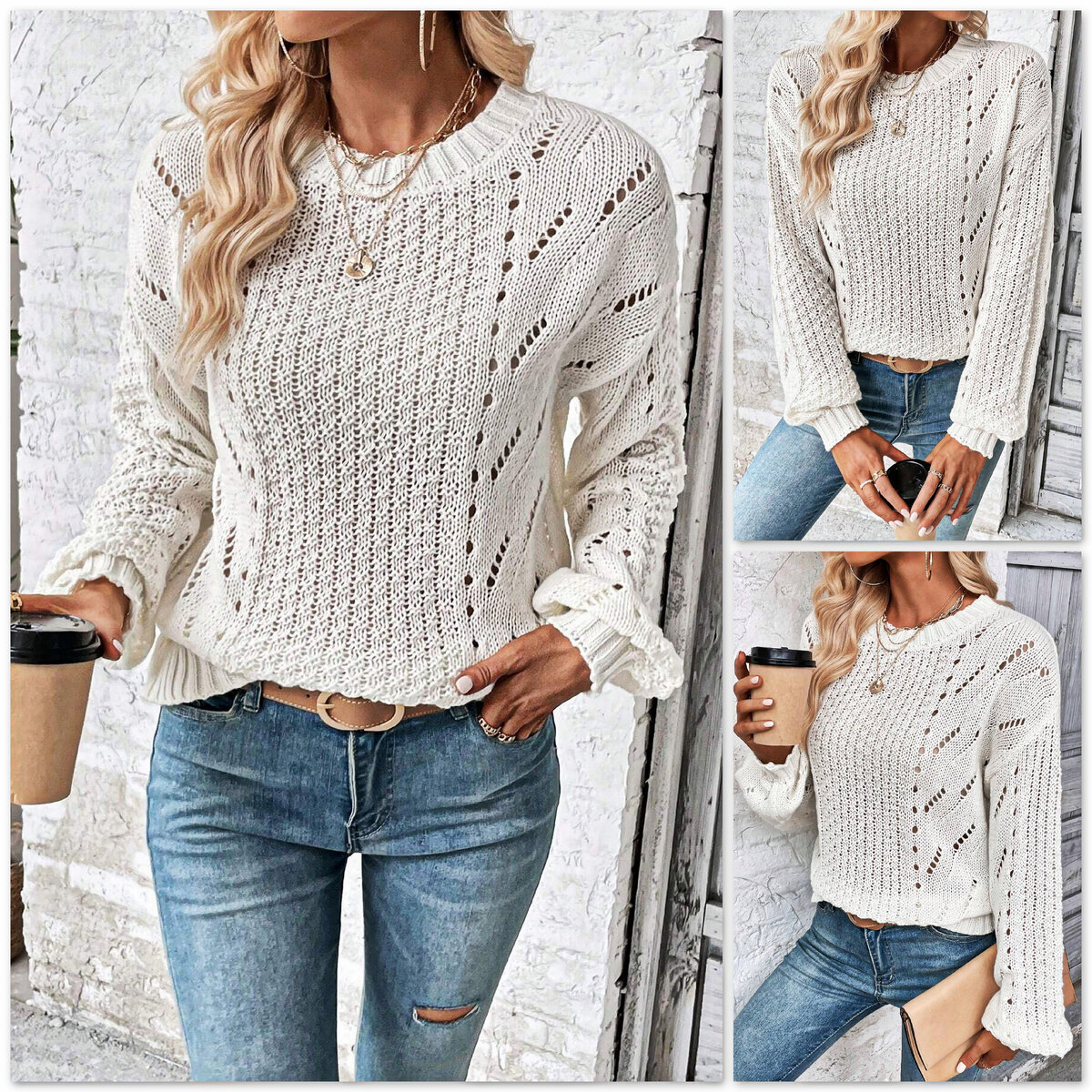 Свитер оверсайз спицами от Шейн. Белые вещи — must have любого гардероба, ведь они идеально вписываются в любой ансамбль!