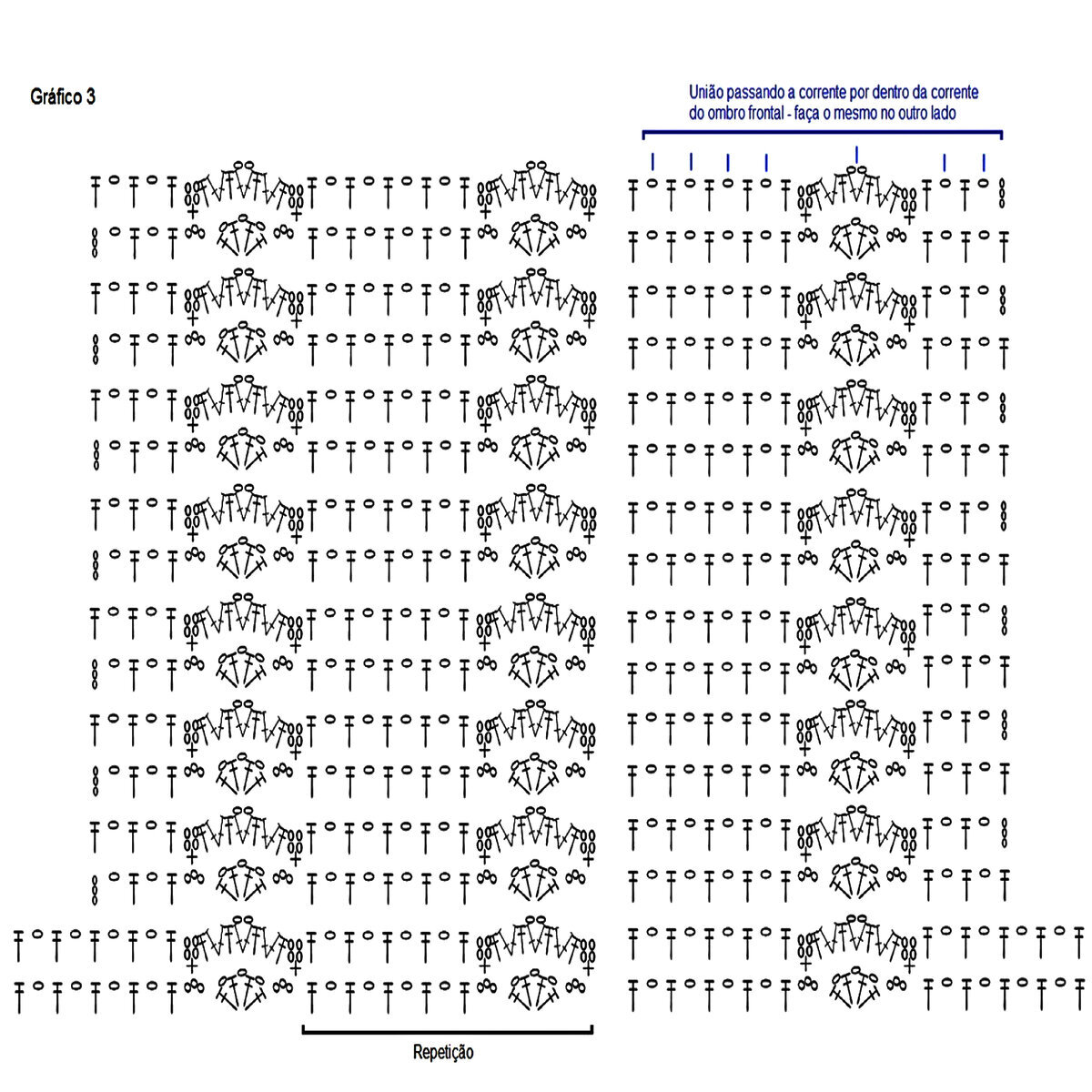 - Ниже локтя на рукавах идёт простая ажурная сетка. Раппорт узора всего 3 петли и 4 ряда в высоту. На схеме указаны только лицевые (нечётные) ряды, изнаночные (чётные) вязать изнаночными петлями.