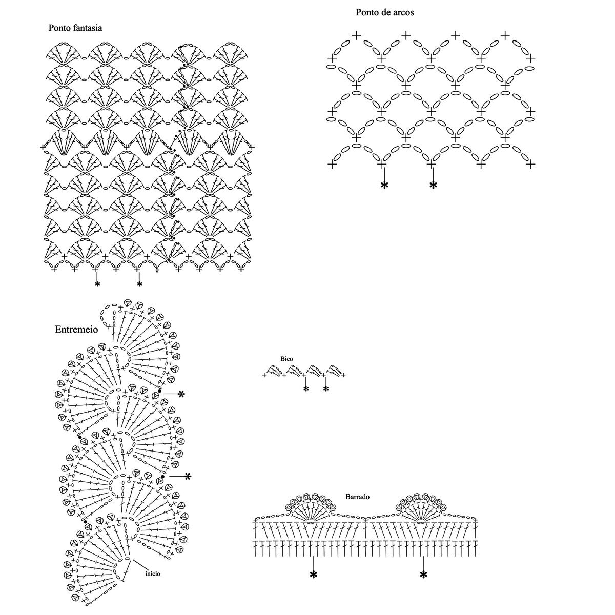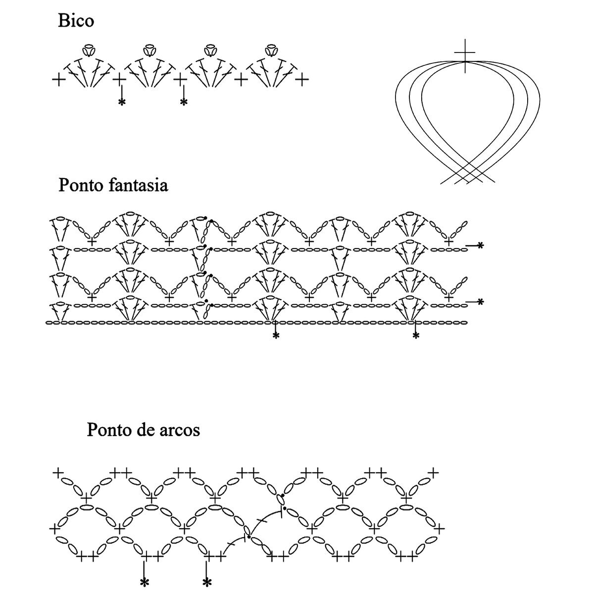 Если вариант с прикеттлёвыванием кажется вам слишком муторным, можно просто надвязать красивую кайму крючком. Самый простой вариант фестончатого края крючком — узор «ракушки». Привожу несколько несложных схем такой каймы.