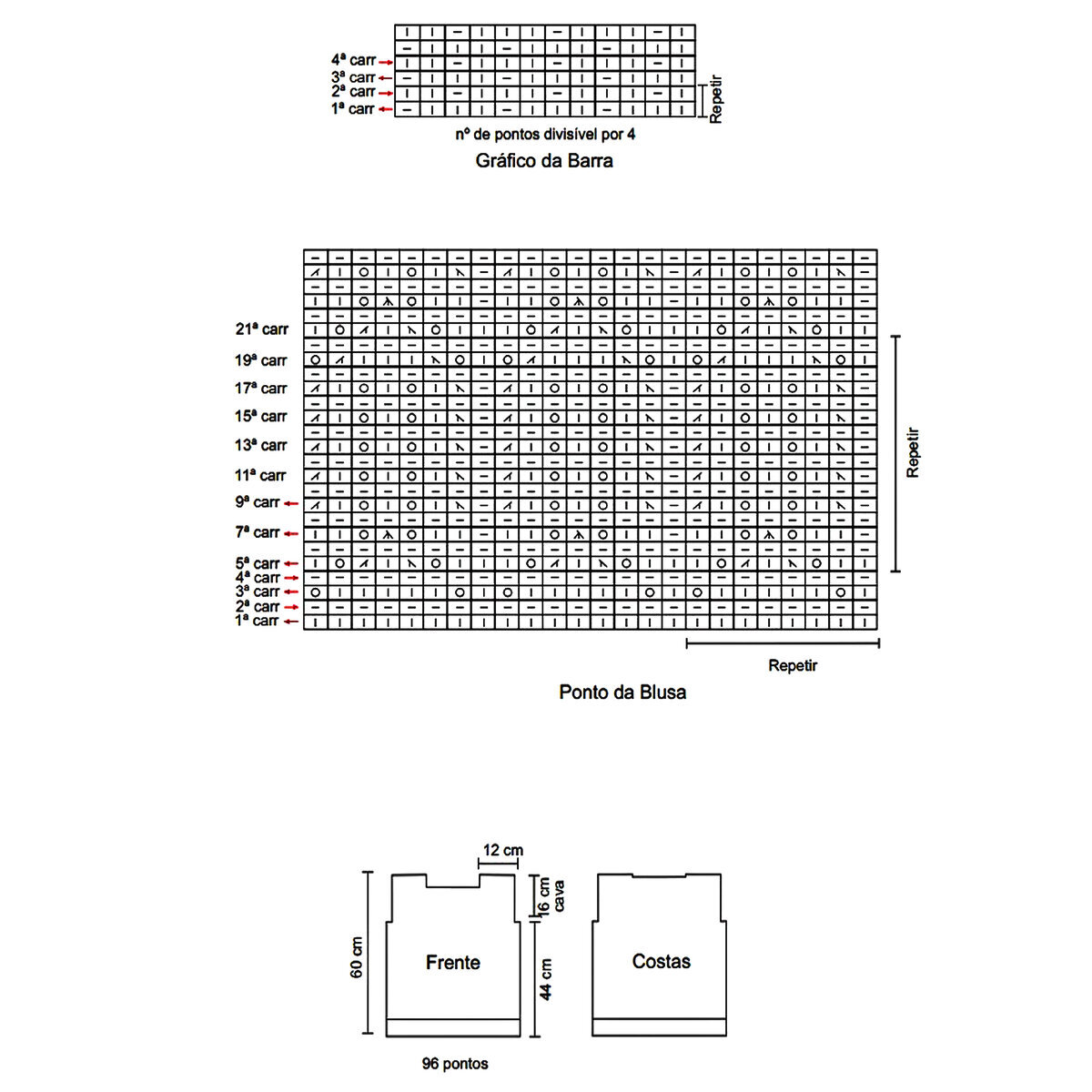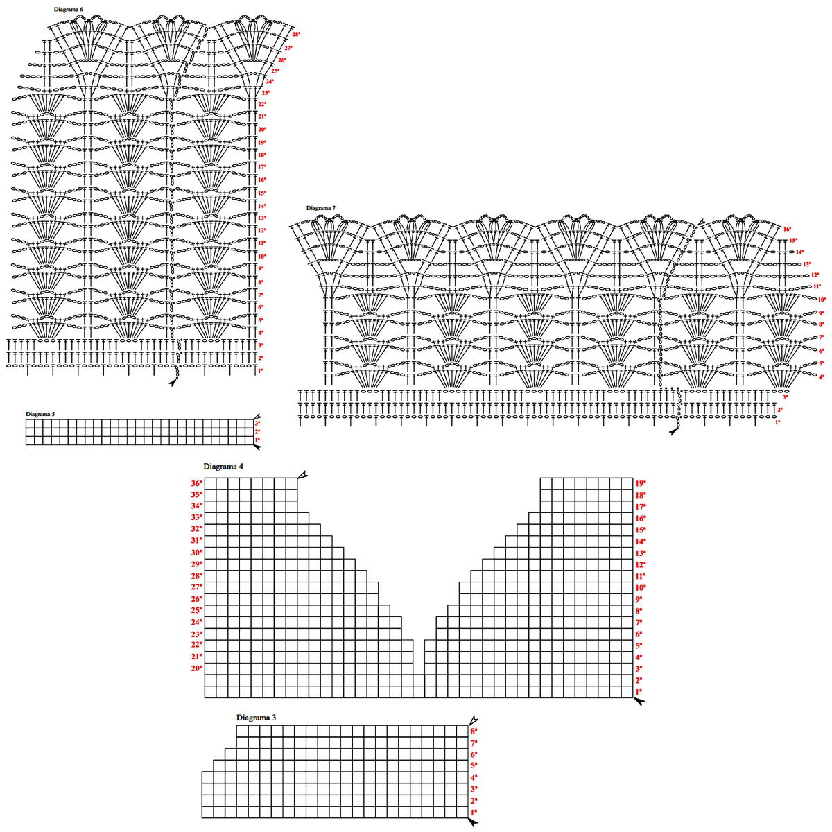 Ажурный узор не сложный, но требует внимания. Я не стала составлять отдельную схему ещё для маленького отрывка внизу топа (да, поленилась), потому что там небольшая вариация основного ажура — можно и не заморачиваться с ним.