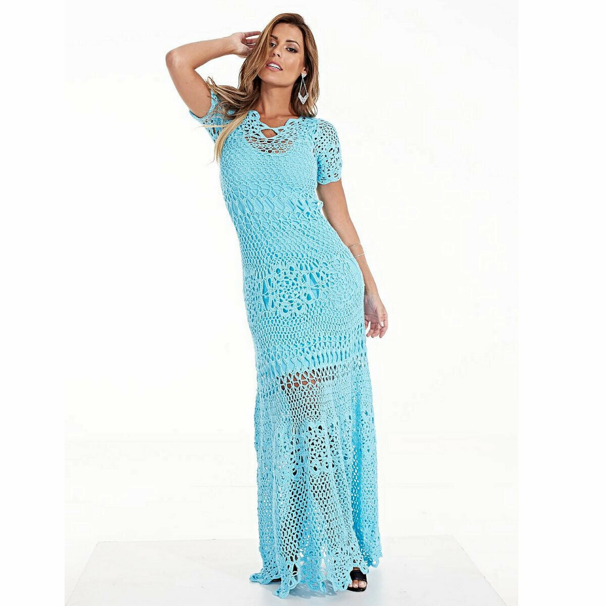 Роскошное платье макси крючком — классическое сочетание цветочных мотивов и сетчатого узора. Струящийся фасон и оригинальный вырез впереди и на спинке делают образ особенно притягательным. Почувствуйте себя нимфой!