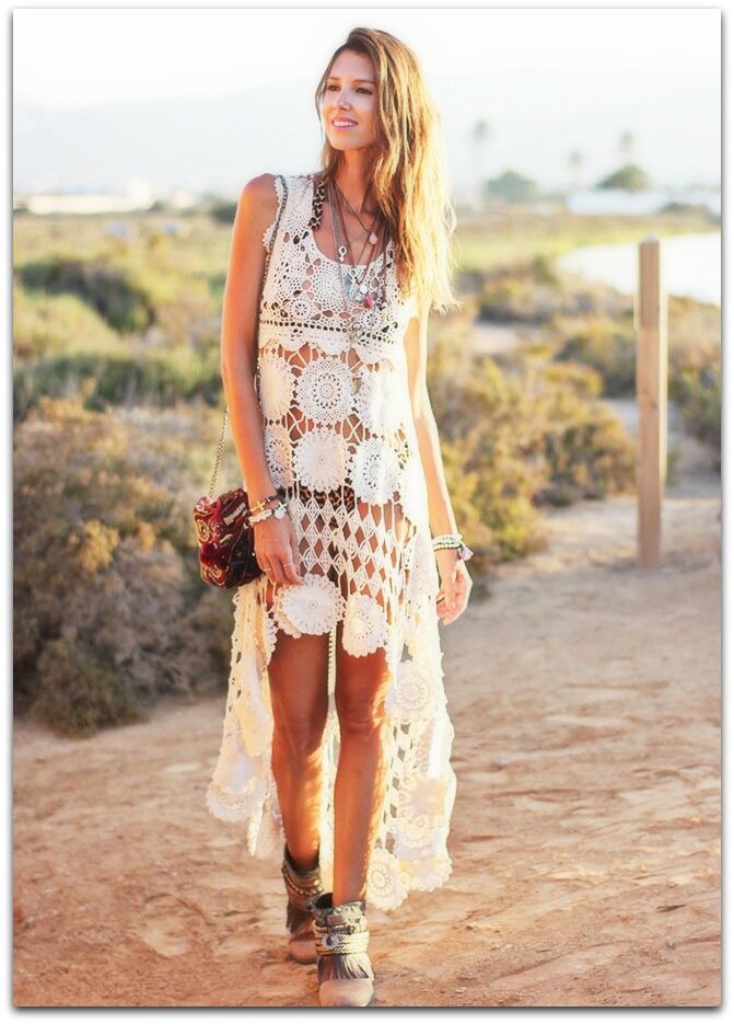 Для этого стиля характерны простые и даже строгие фасоны, пастельная гамма — в основном, преобладают разные оттенки белого, серого и бежевого цветов. Наиболее далёкий (если можно так выразиться) от хиппи-стиля вариант. Такие модели придутся по вкусу даже очень искушённым и изысканным модницам.