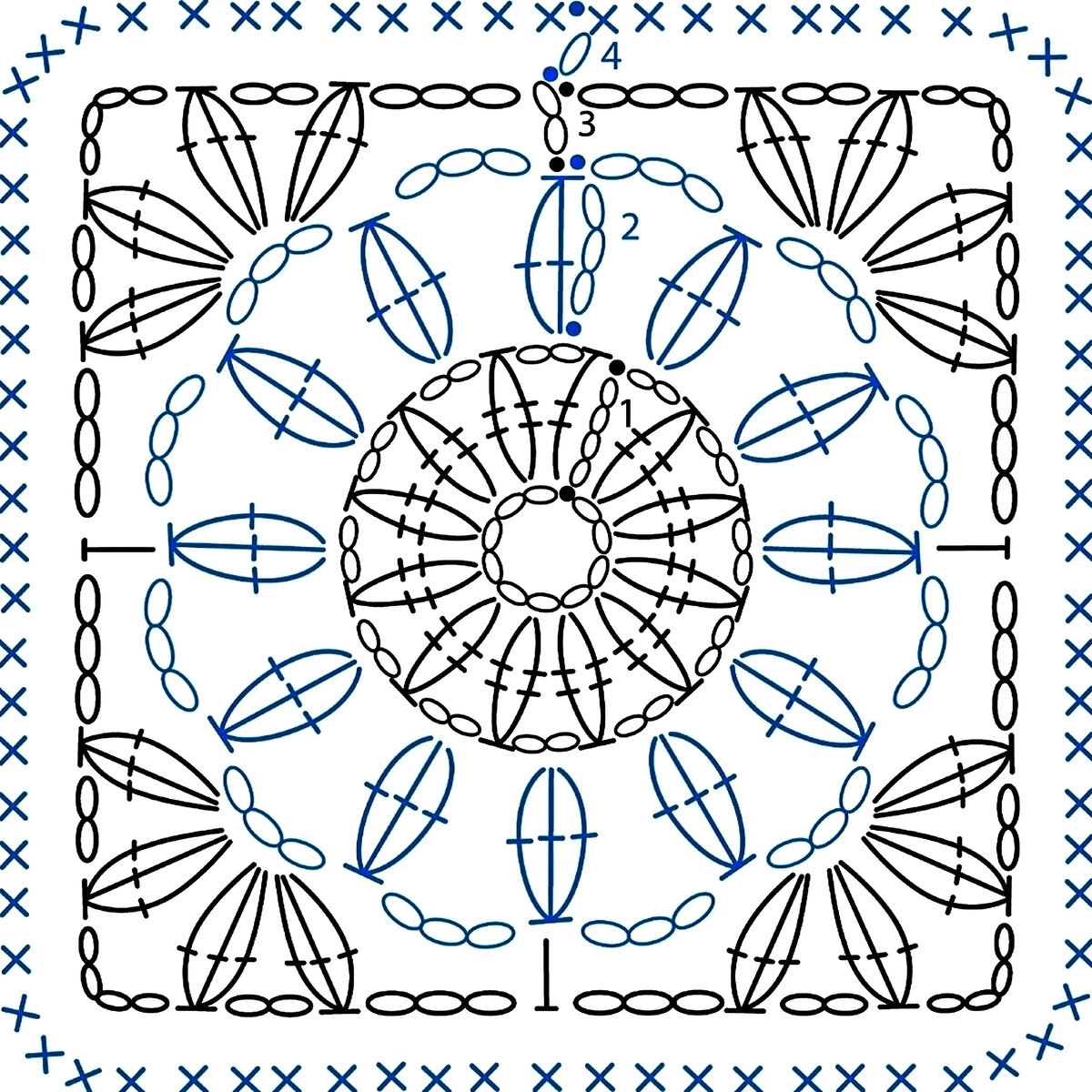 В качестве схемы использовала этот квадратный мотив, изменив пару элементов под себя (а рисовать схемы для крючка самостоятельно так и не научилась):