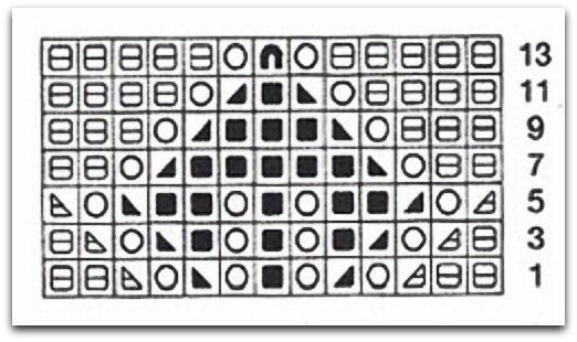 В качестве схемы узора можно использовать схему, которую приводила для гольфин выше. Повторю её здесь ещё раз, чтобы не запутывать вас в поисках.