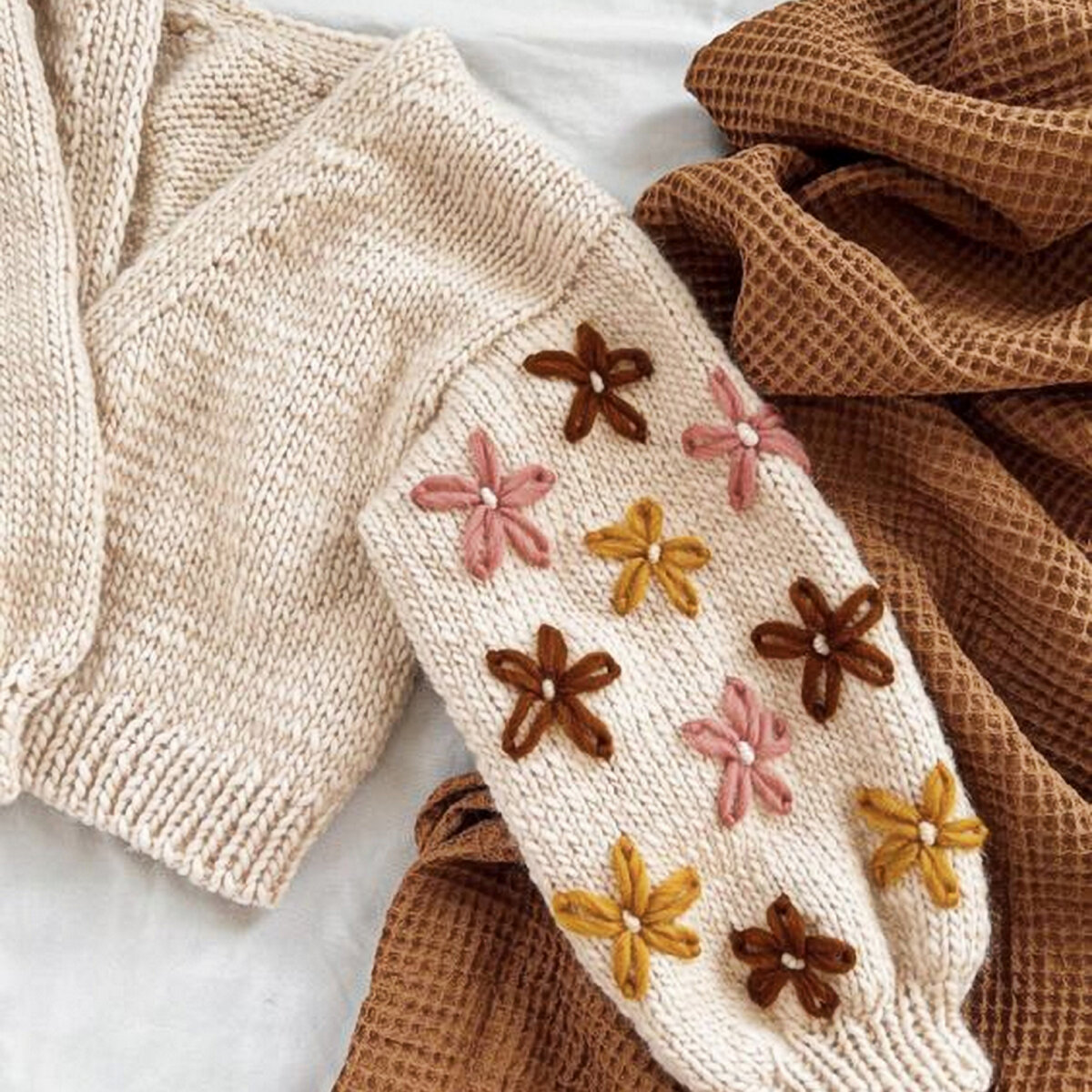 Для эффектного преображения вам даже не нужно уметь вязать! Правда, навыки вышивания здесь определённо понадобятся. Но даже если вы ни разу не вышивали, научиться делать простенькие стежки — задача от силы нескольких дней, а то и часов!