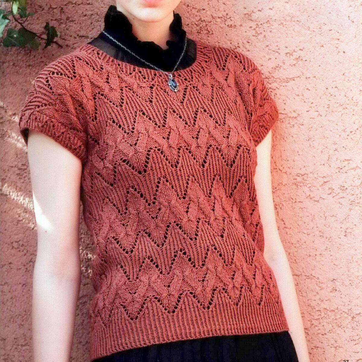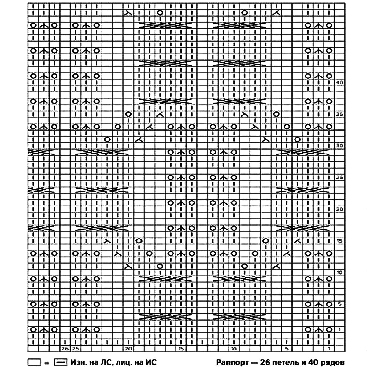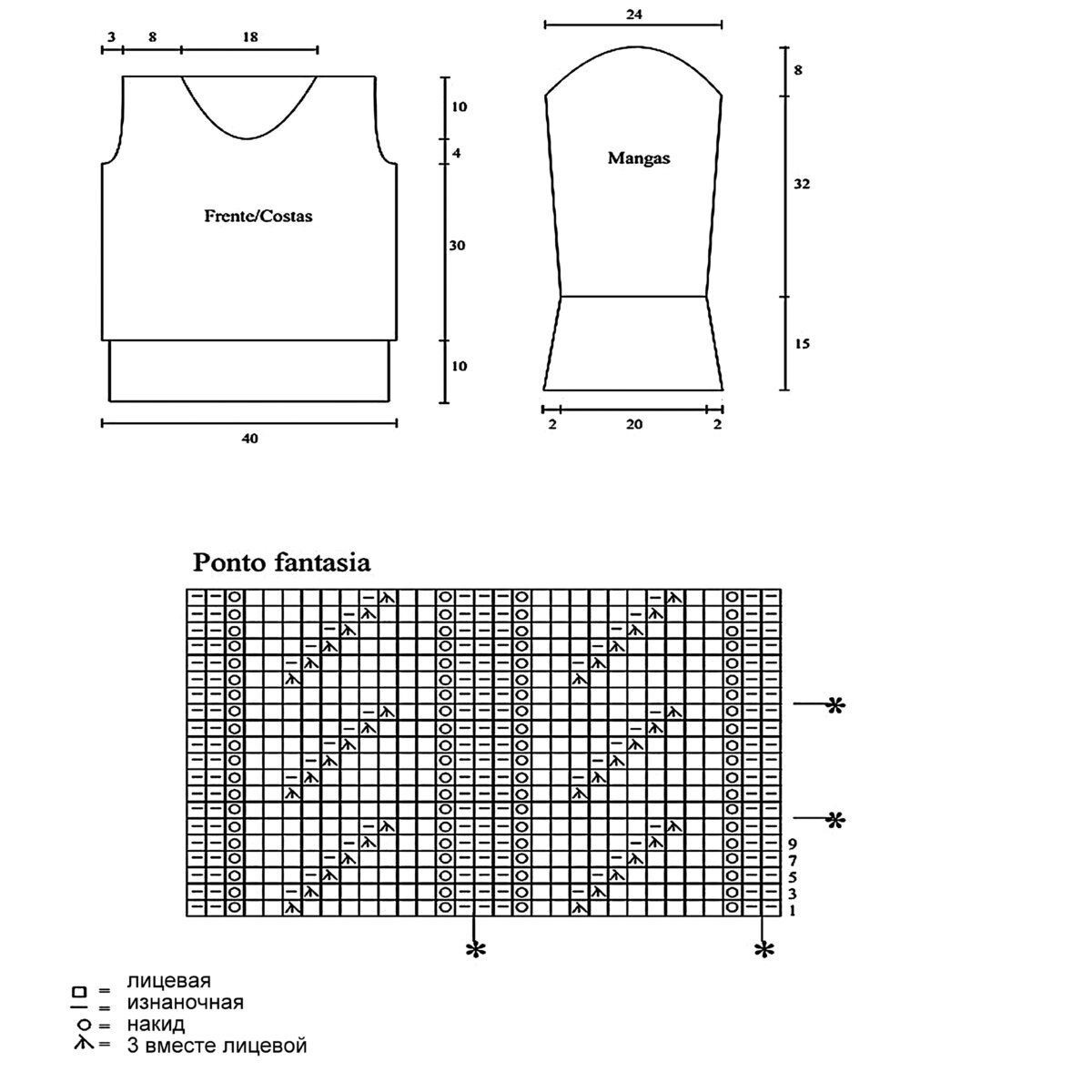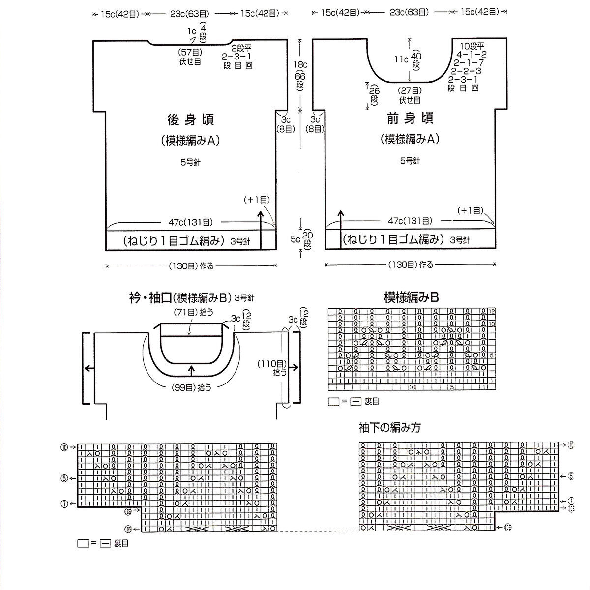 Джемпер связан популярным японским узором, расшифровка условных обозначений ЗДЕСЬ