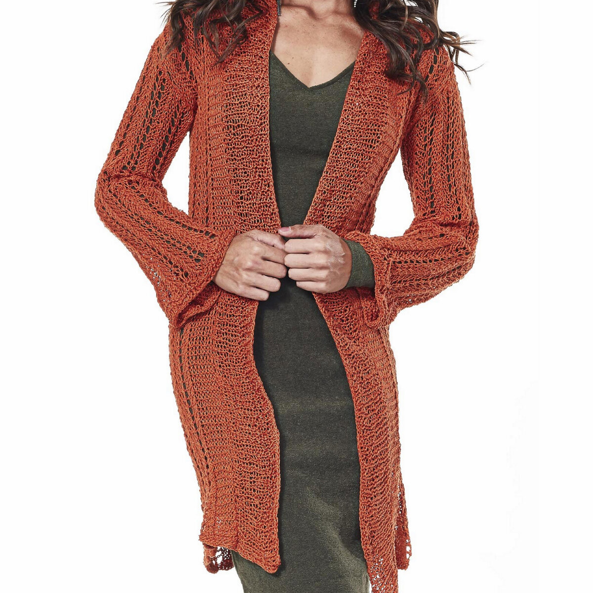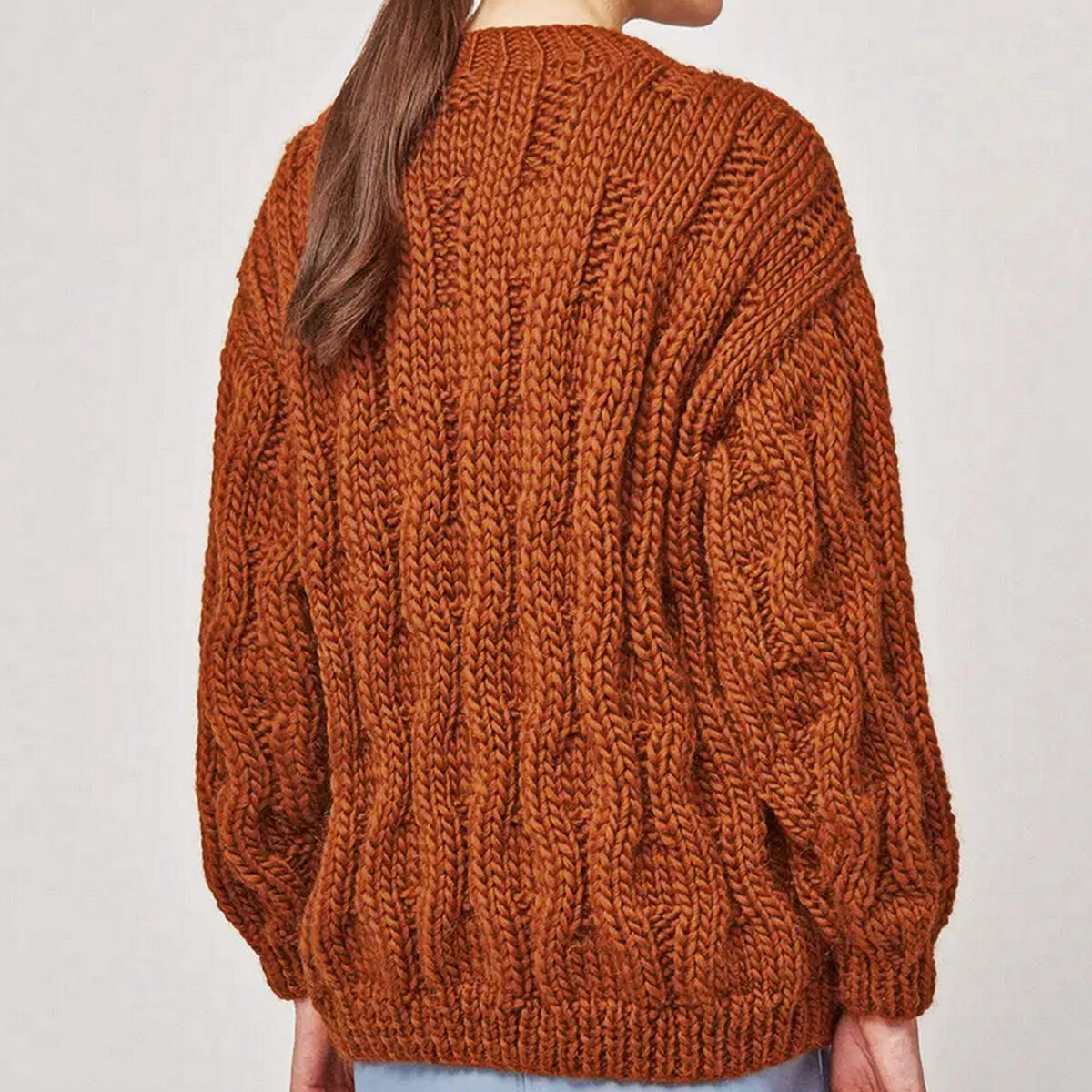 Кирпично-рыжий кардиган с красивыми рельефными узорами. Мягкая и уютная женская модель оверсайз с простым прямым кроем.
