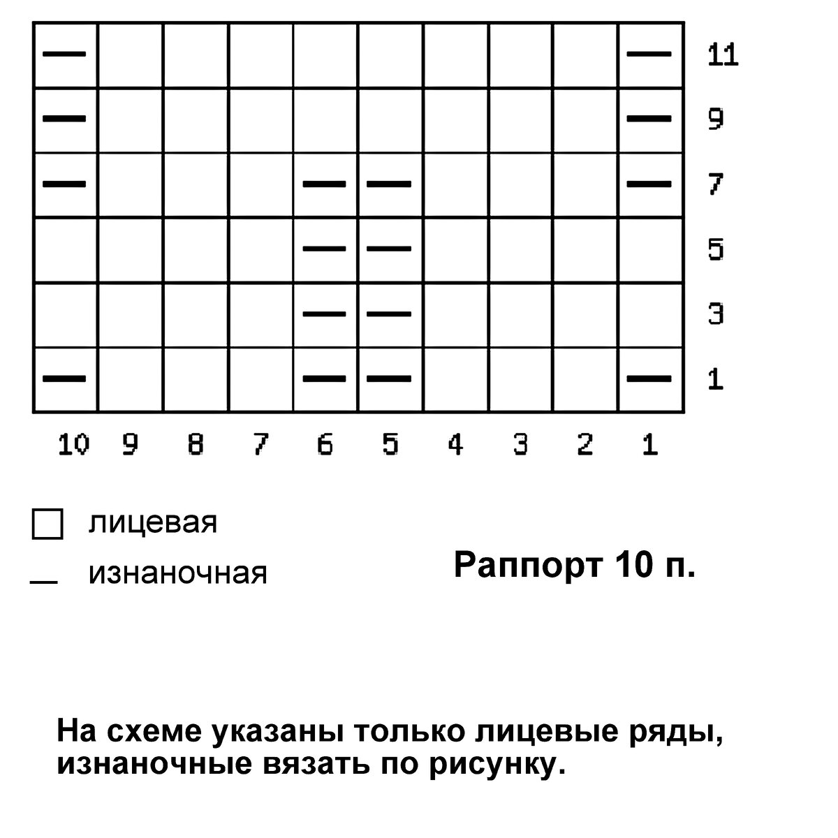 - 2-й и все последующие чётные (изнаночные ряды) — по рисунку