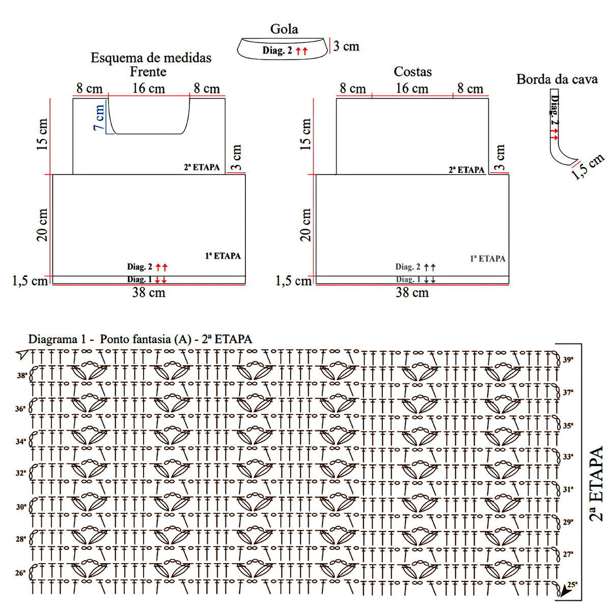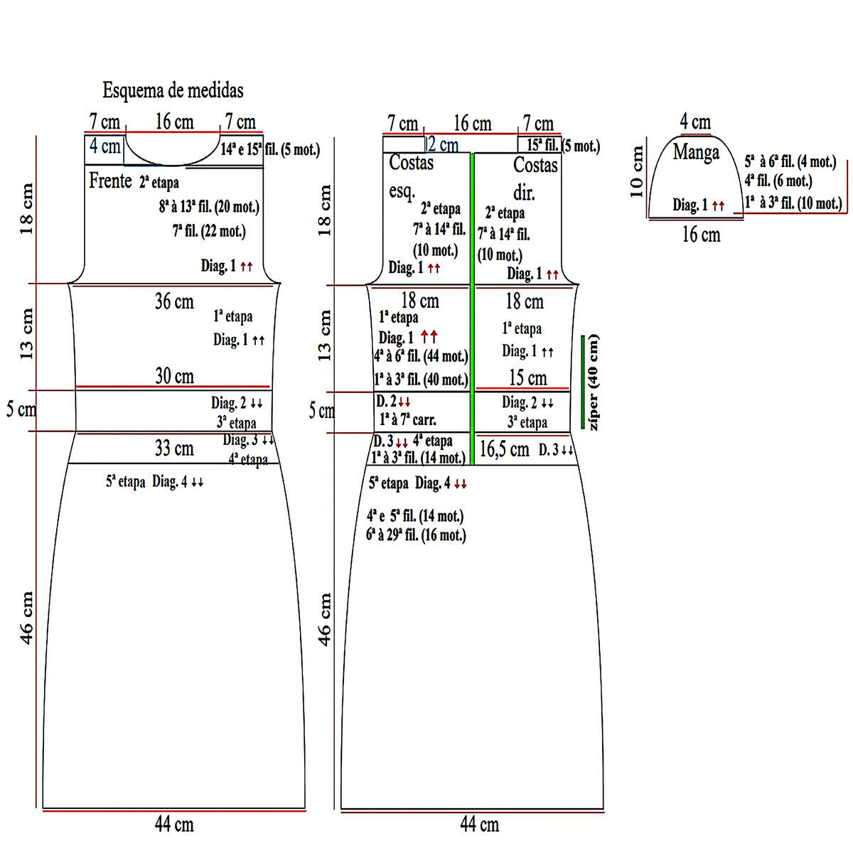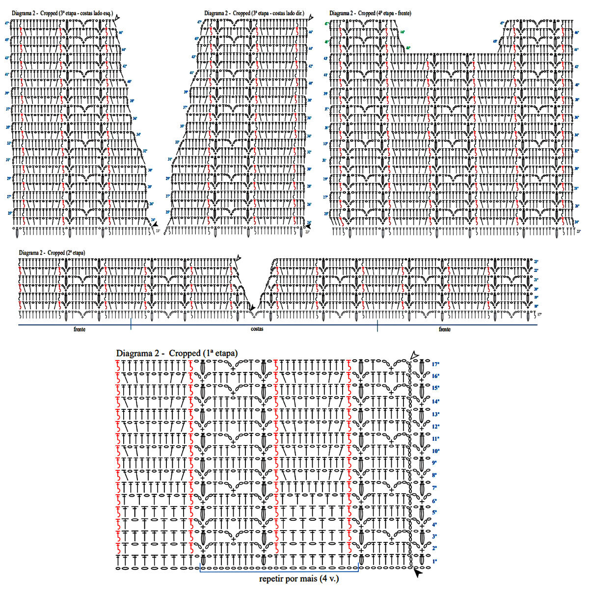 Спинка вяжется лицевой гладью. Обратите внимание, что схема для кругового вязания — указаны и лицевые (нечётные) и изнаночные (чётные) ряды —, но для поворотных рядов добавлены уточнения касательно изнаночных (чётных) рядов).