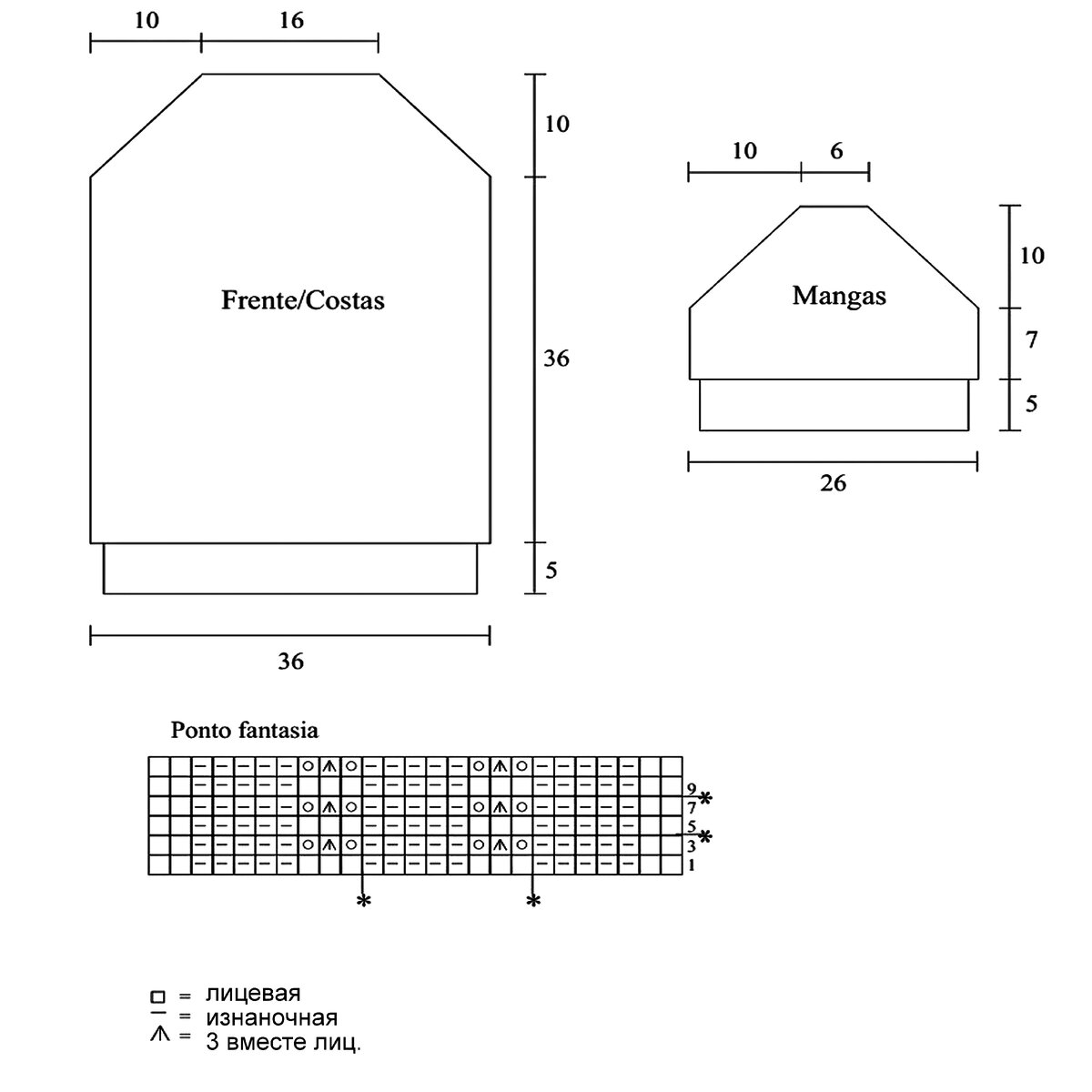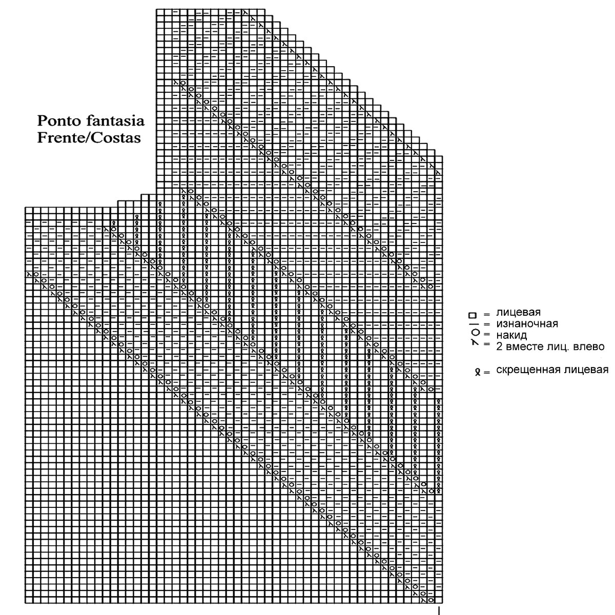 Внимание! Узор вяжется в каждом ряду. При поворотном вязании «2 вместе лиц. влево» в изнаночном ряду следует вязать как «2 вместе изн. вправо».