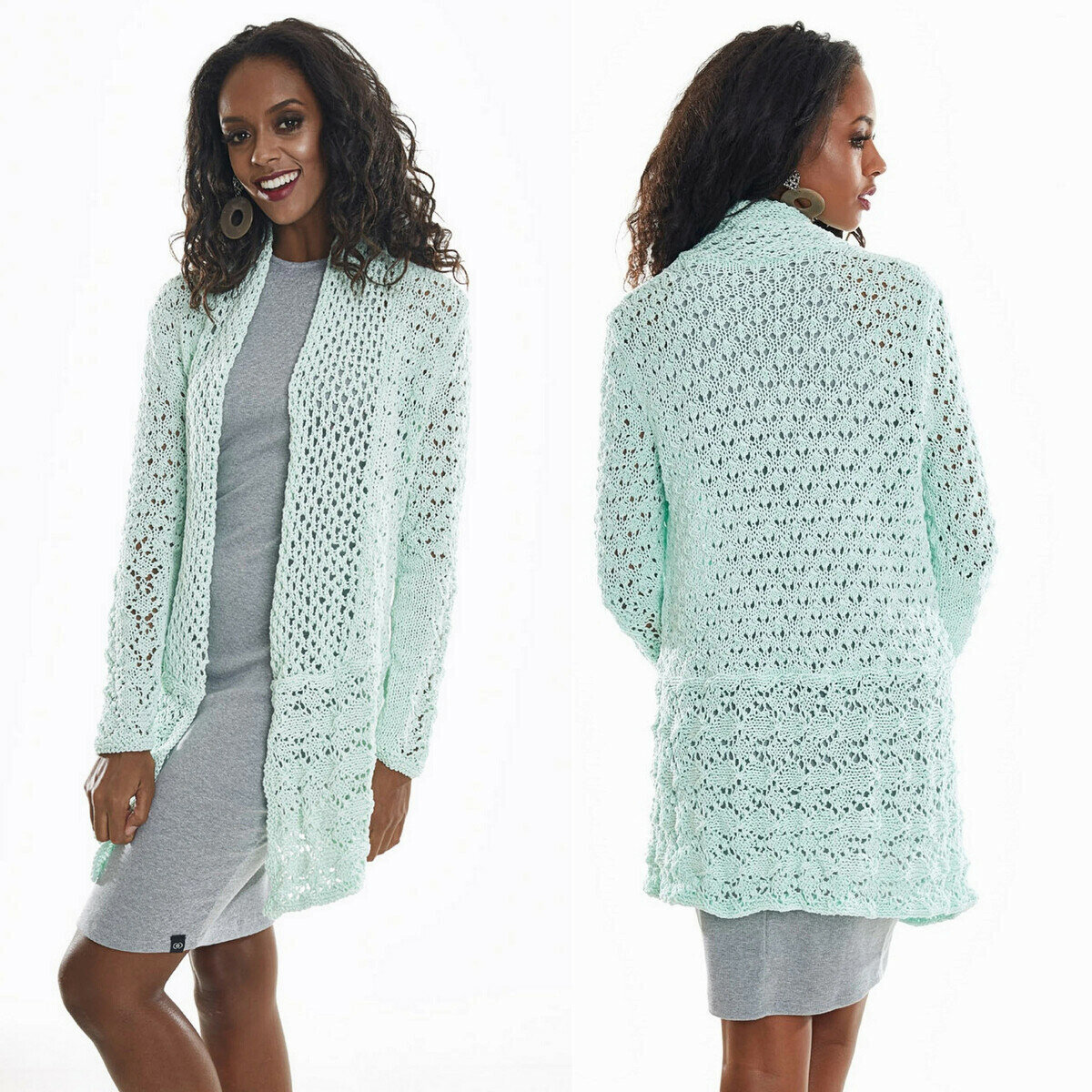 Если вы хотите визуально добавить пространства и света в интерьере, покрасьте стены в мятный и вы удивитесь чудесному преображению! Впрочем, сегодня речь пойдёт не об интерьере, а о вязаных вещах — здесь мята влияет не менее волшебно! Мятные оттенки (они же ментоловые) идут всем, а уж как они освежают цвет лица — это просто сказка. Убедитесь сами!