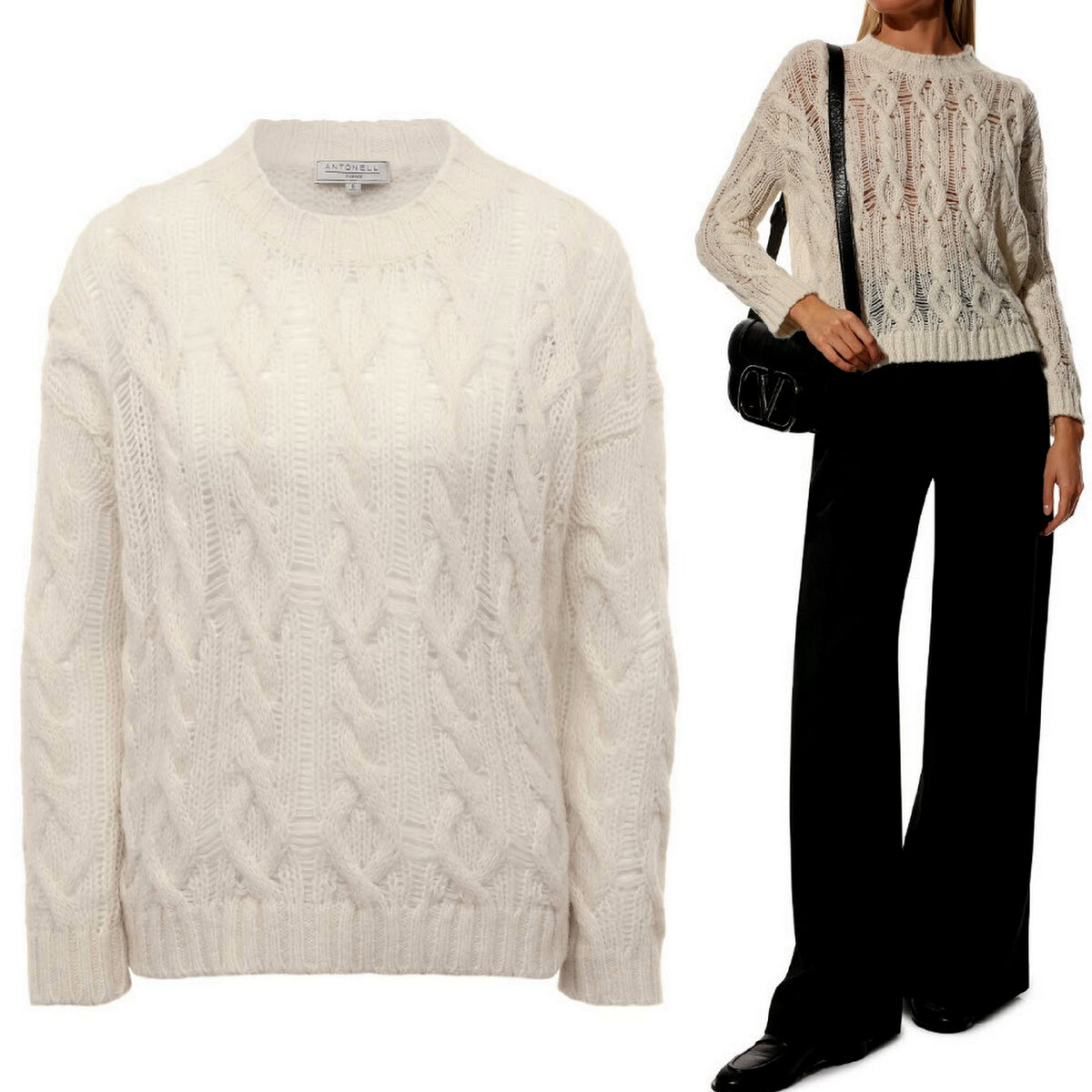Тёплый и одновременно невесомый шерстяной свитер — нежное сочетание жгутов, ромбов и вытянутых петель.