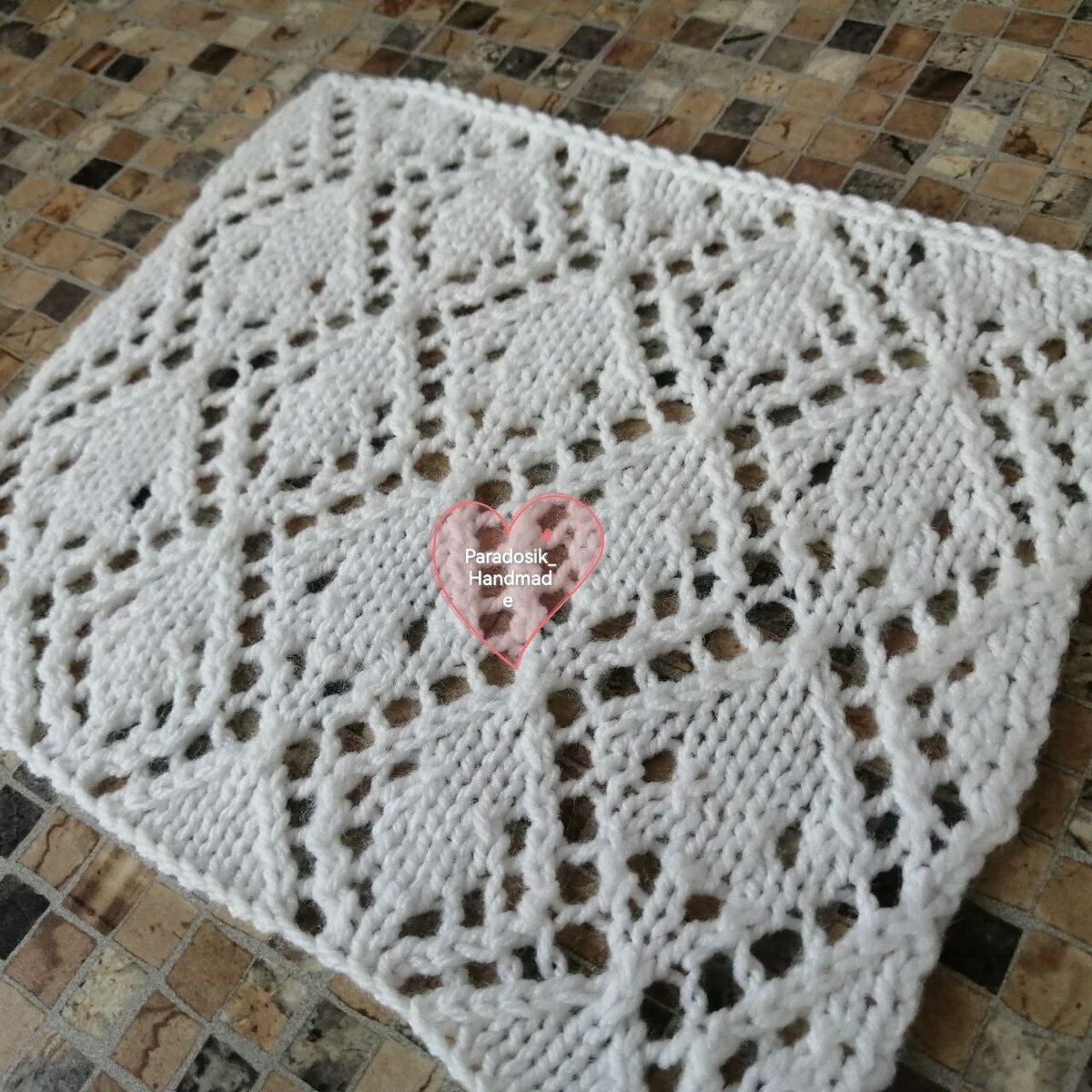 Пару лет назад у меня было продолжительное «залипание» на узорах. Причём, интересно мне было что-то придумывать самой (конечно, велосипед не изобретала, но какую-то свежую «струю» всё же вносила). Тогда я навязала целую стопку узоров, которую вам потом показывала. Я планировала из этих образцов позже собрать большое ажурное покрывало, но… Не буду вдаваться в подробности, но был такой период, что хотелось всё старое выбросить быстрее. Не пожалела и эти образцы.