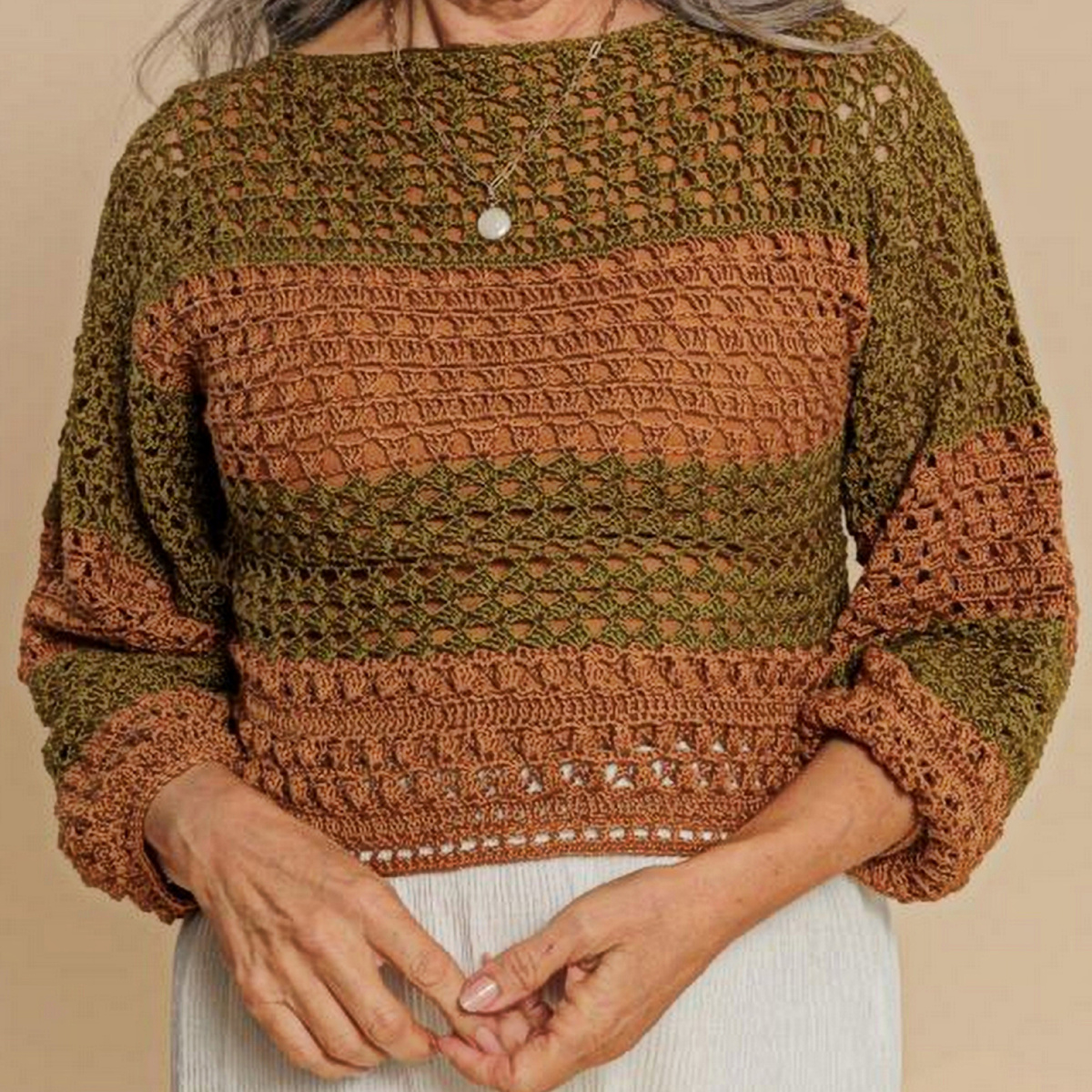 Для вязания нам потребуется по 2 мотка болотно-зелёной и светло-коричневой пряжи: 100% мерсеризованный хлопок; 100 гр — 400 м. Крючок № 2,5.