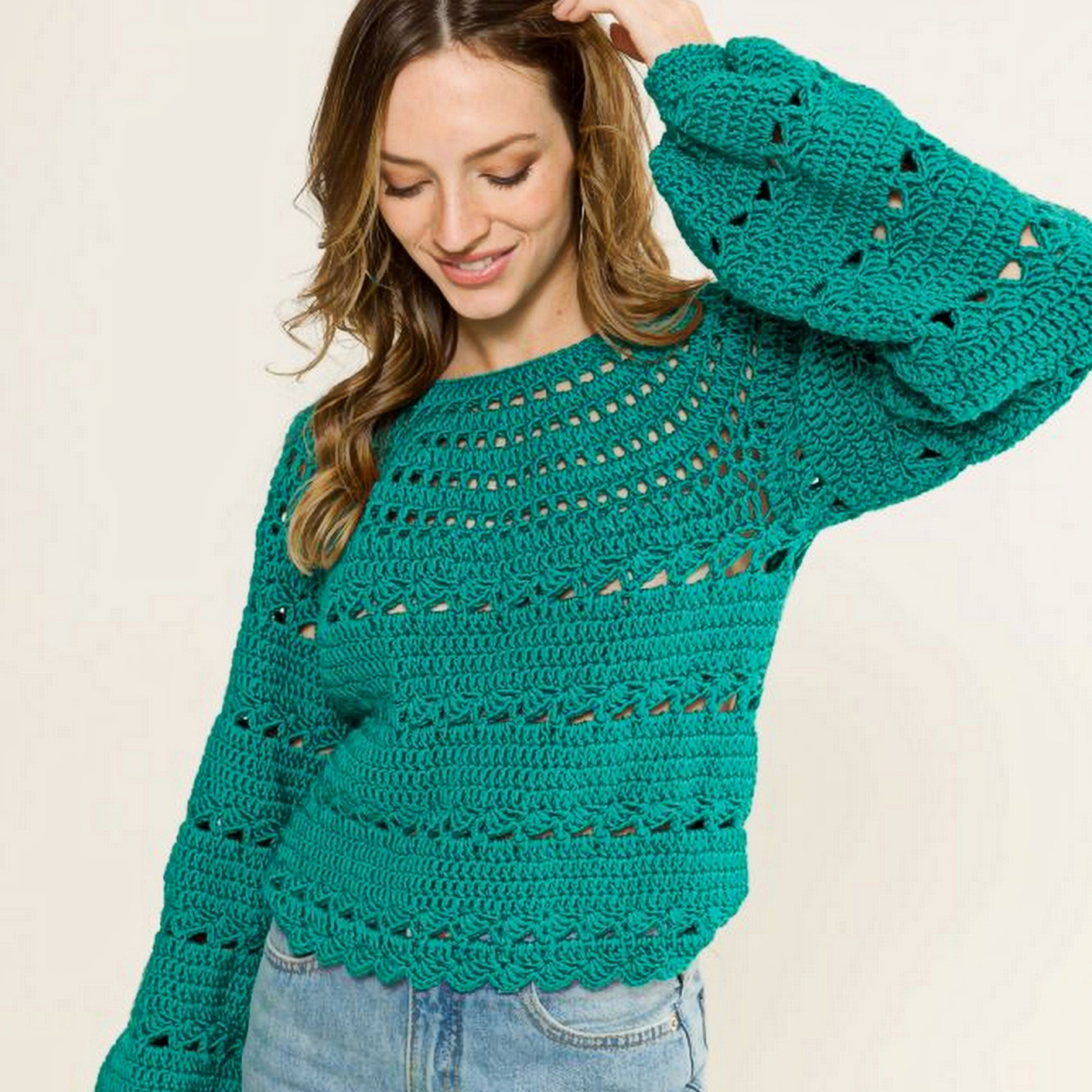 Для вязания нам потребуется 8 мотков иссиня-зелёной пряжи: 100% акрил; 100 гр — 160 м. Крючок № 5.