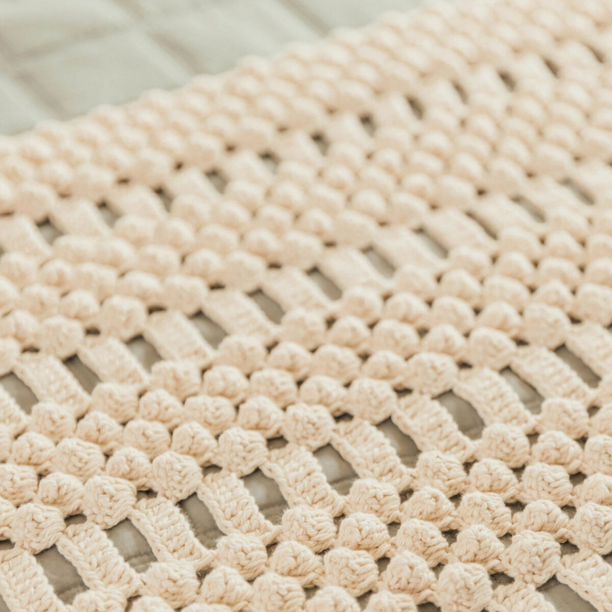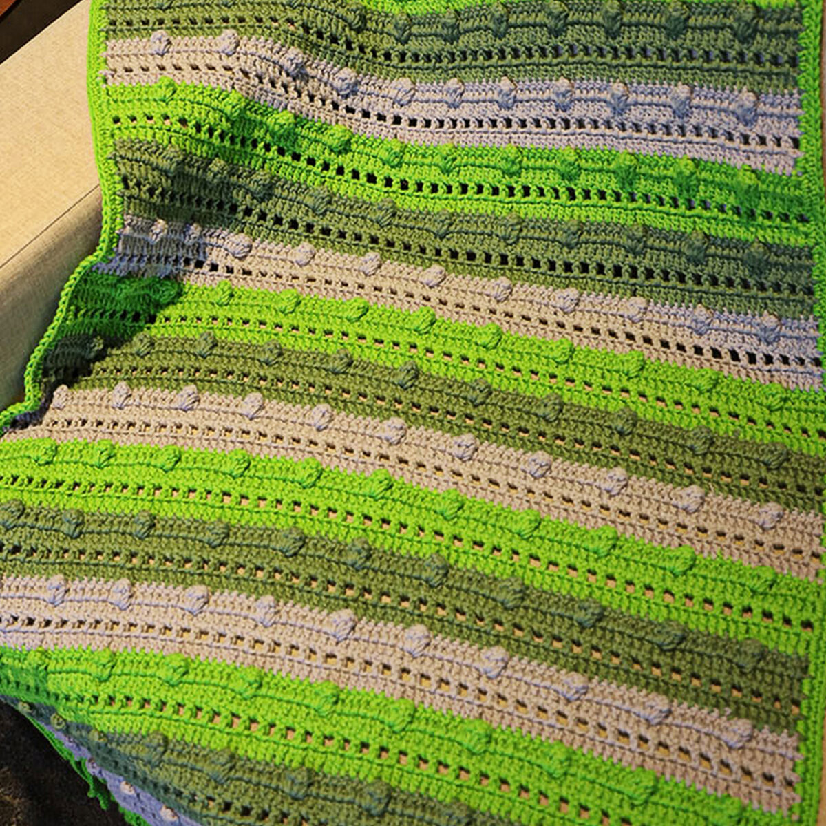 Необычный вариант с большим количеством шишечек, который я назвала для себя «Поп ит». Мне кажется, такой плед вполне может послужить в качестве массажного коврика.