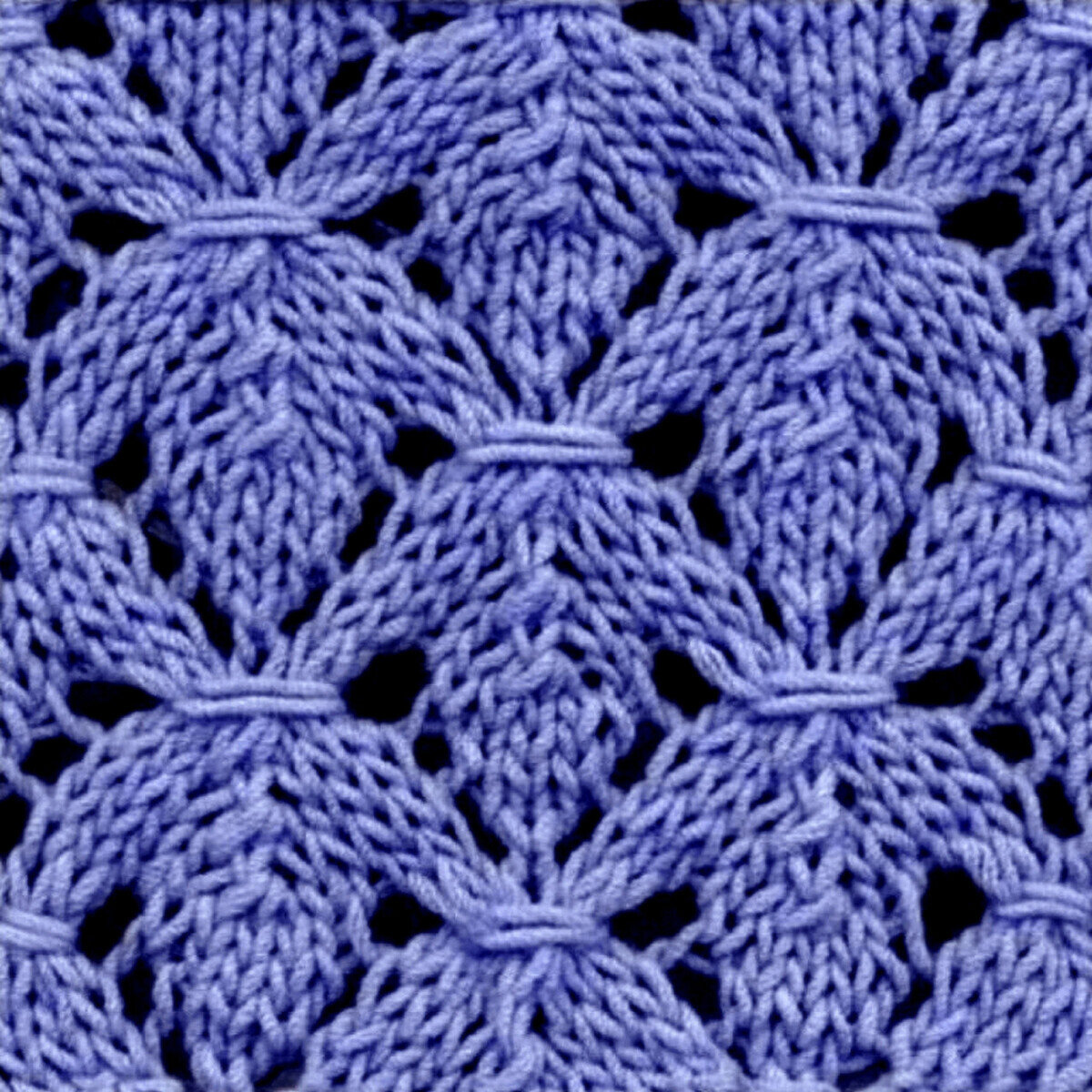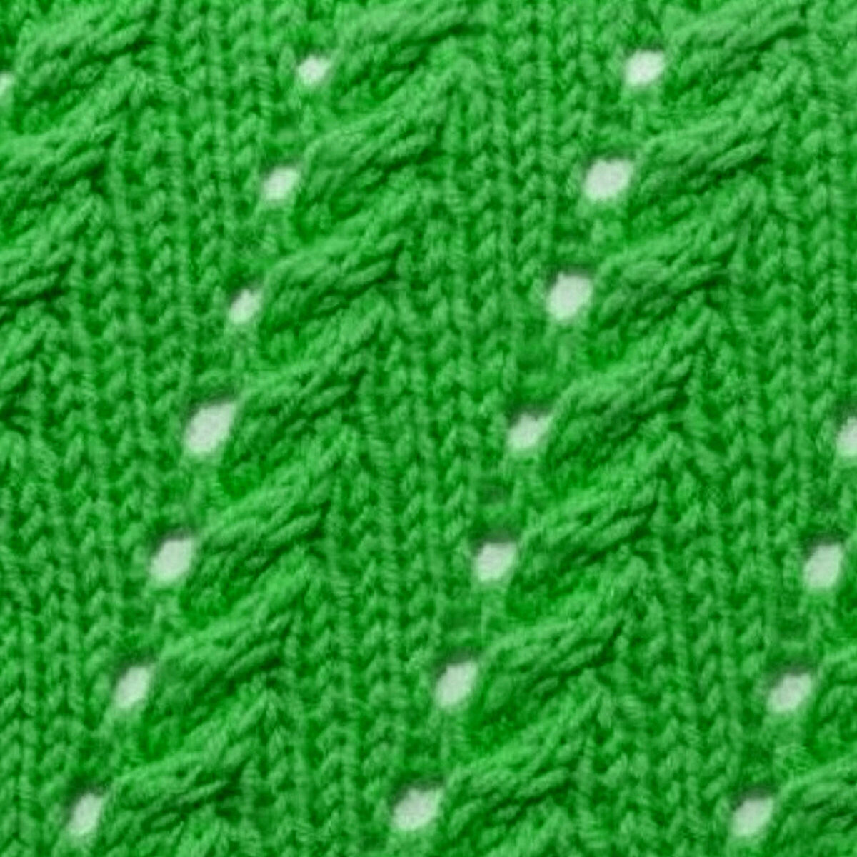 Очень «дырявый» ажурчик, который отлично подойдёт для вязания невесомой шали, палантина или струящегося ажурного кардигана на весну. Для такого узора идеально подойдёт тонкий и несильно пушистый мохер (кид мохер).