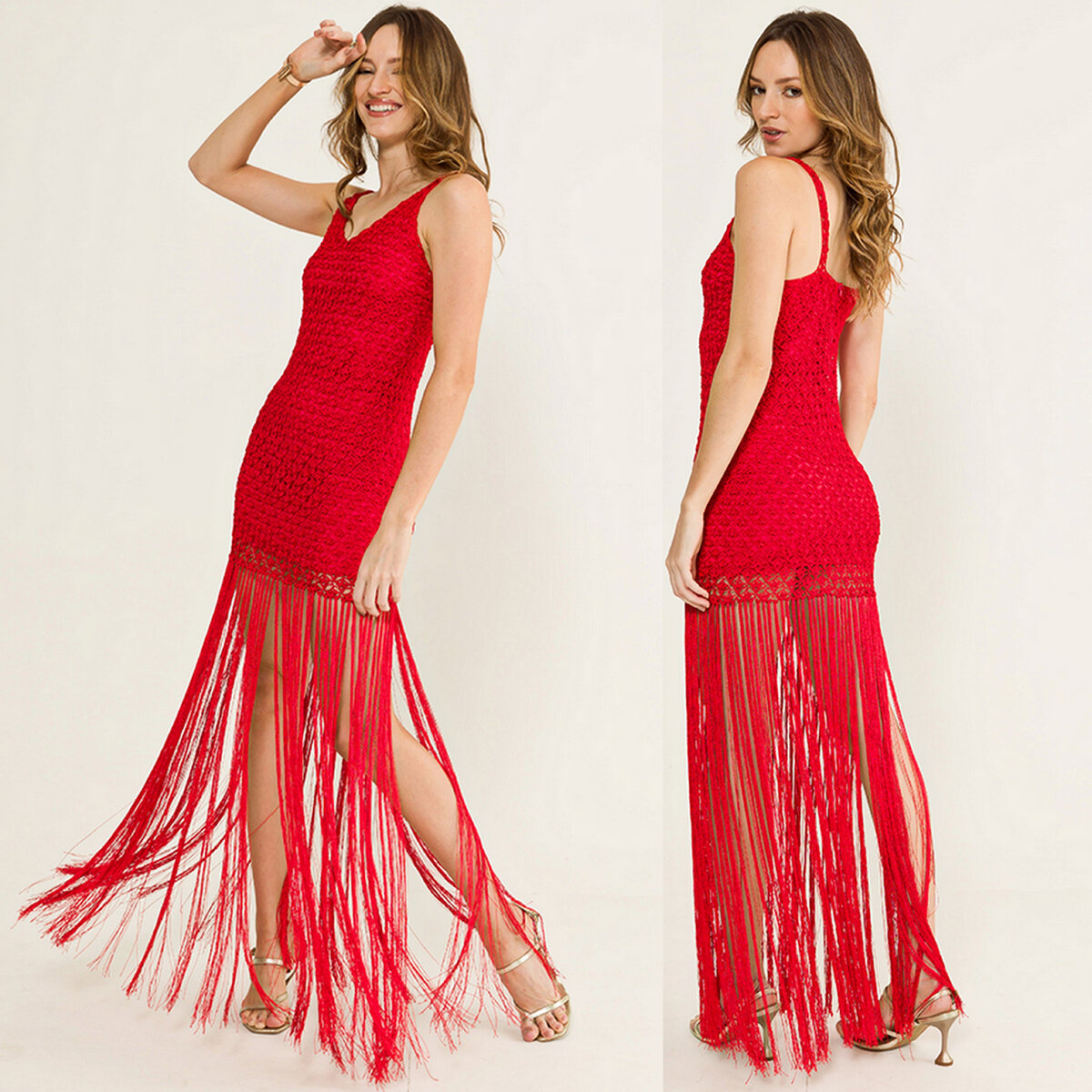Роскошное красное мини, украшенное длинной бахромой до самого пола! Такая модель всегда будет выглядеть празднично уже только за счёт сочного цвета.