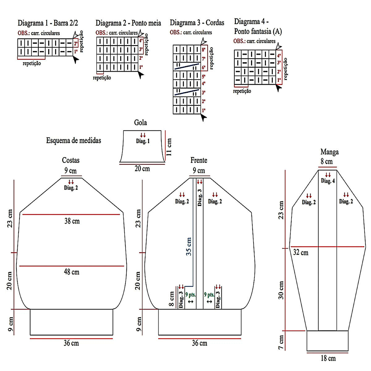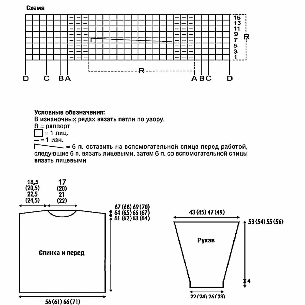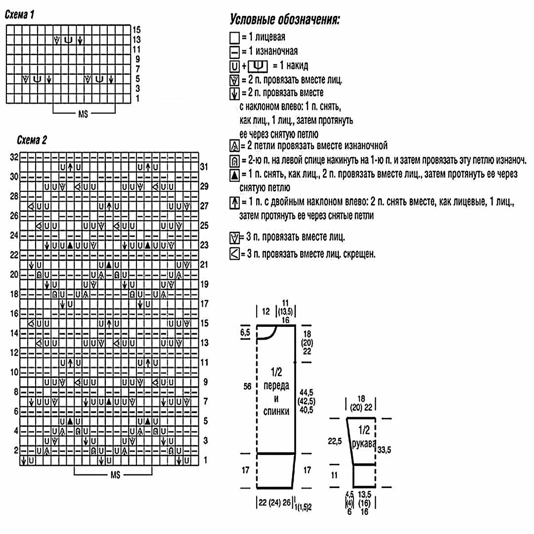 Нарисовала примерный расчёт по второму варианту горловины, а также схему ажура и поперечной косы.