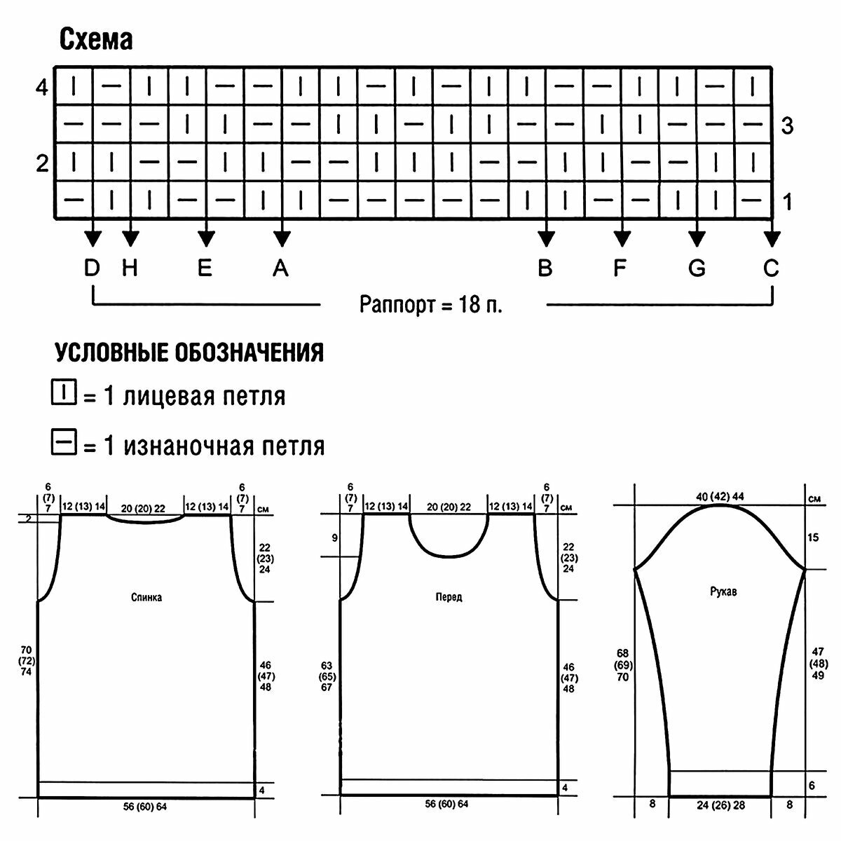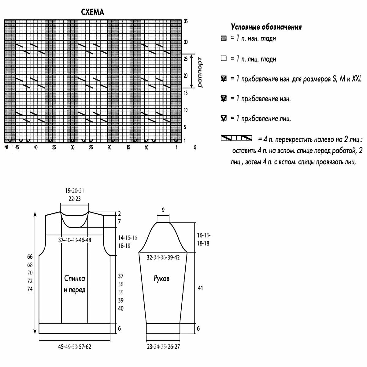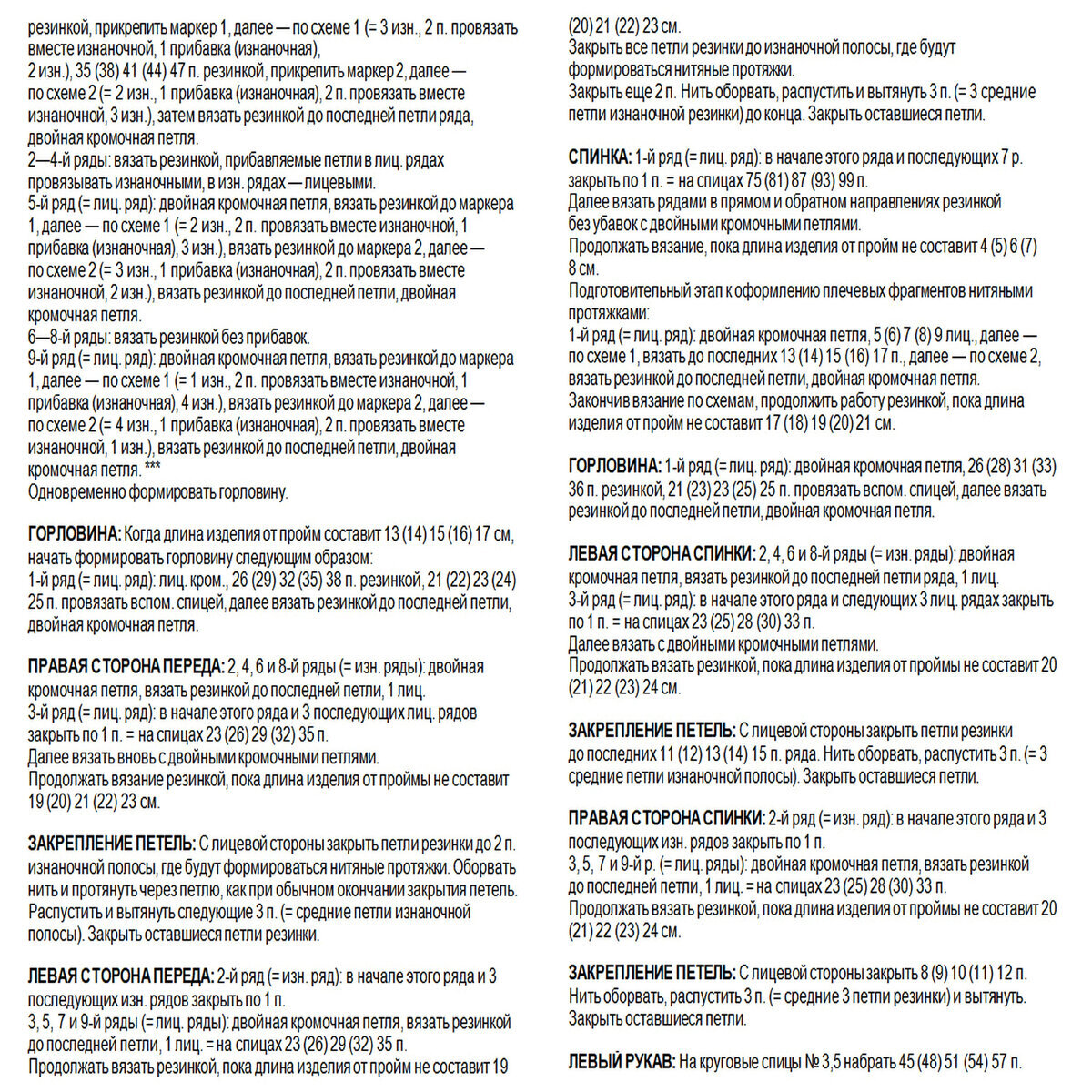 Отделка по низу, на манжетах и горловине — американская резинка (последняя схема).