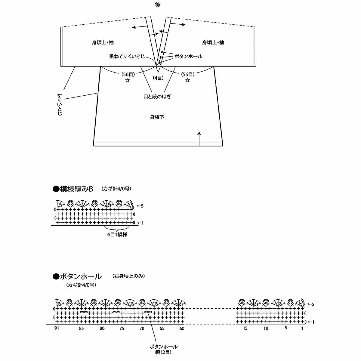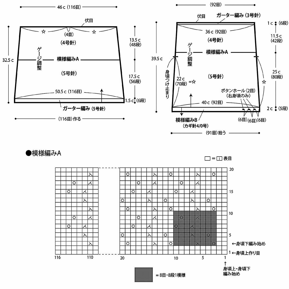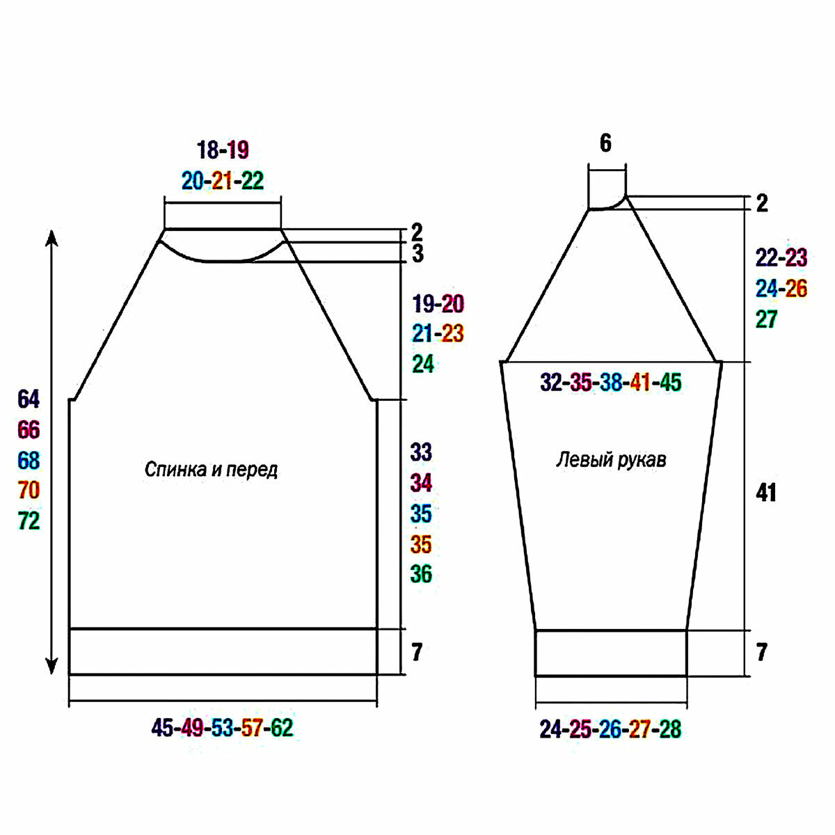 Отделка по низу, на манжетах и горловине — американская резинка (последняя схема).