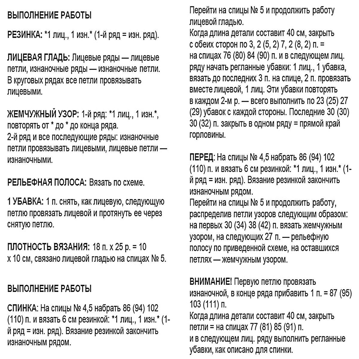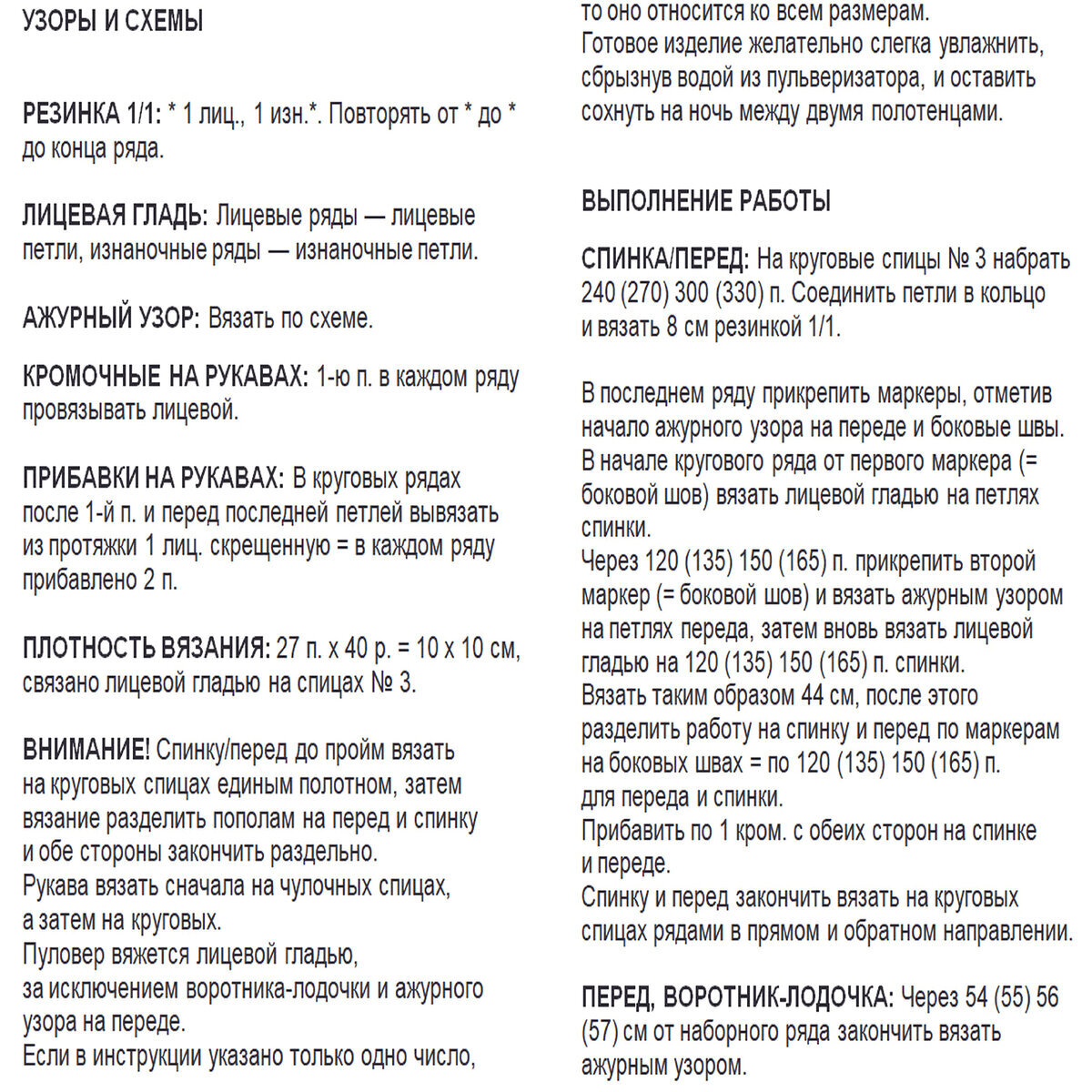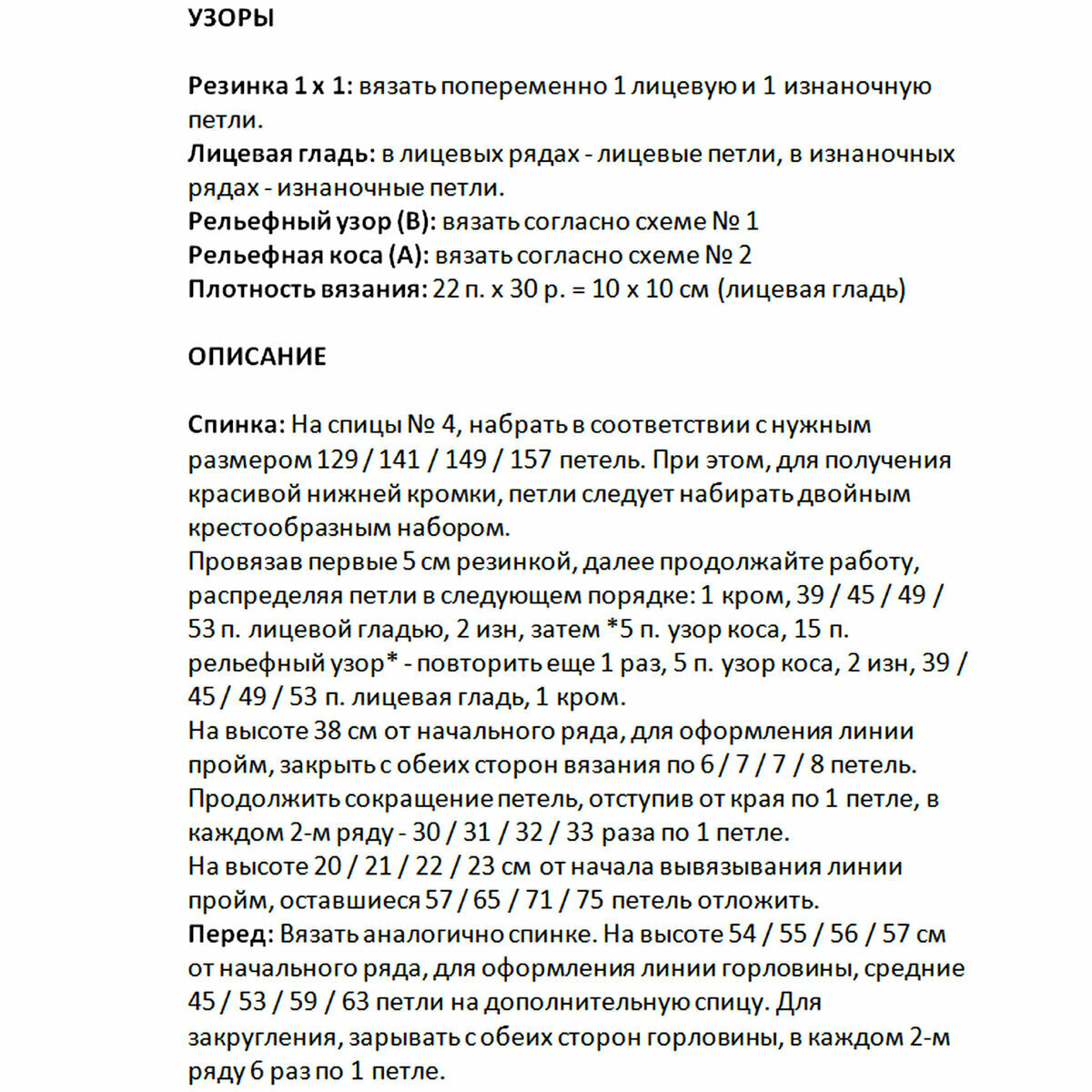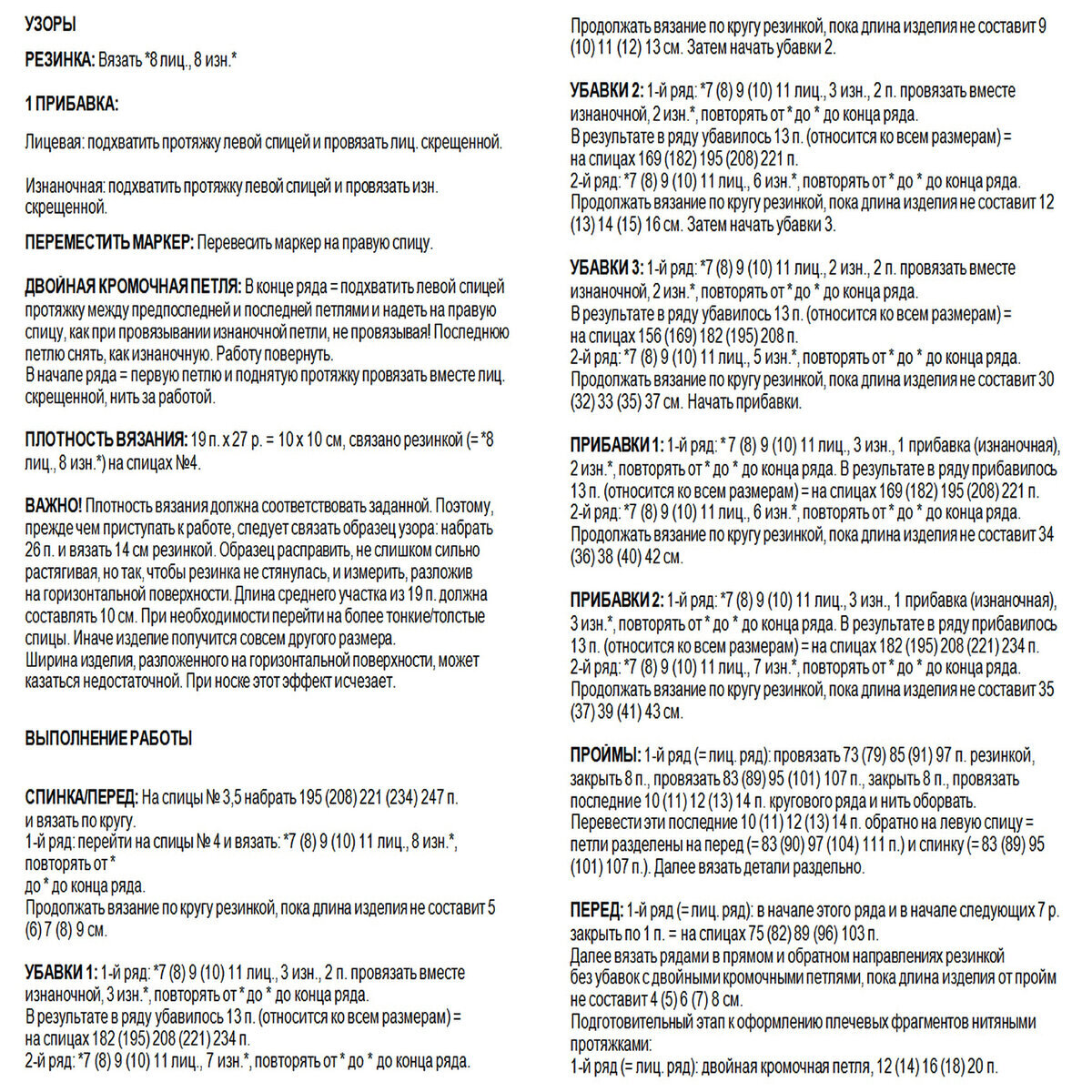 Для широкой резинки 3х3, которая идёт внизу, по горловине и на манжетах, используем спицы № 3,5. Для всего остального — № 4.