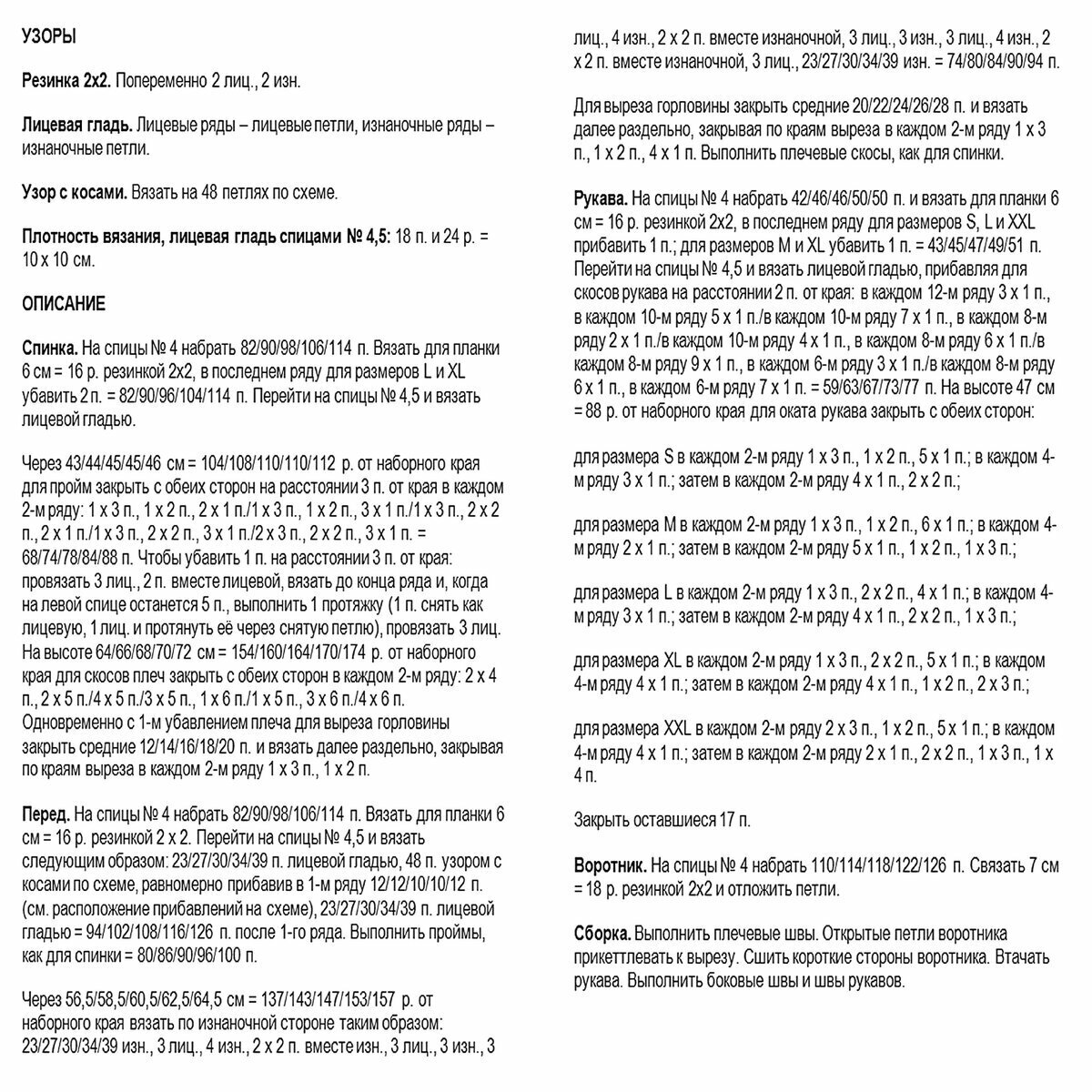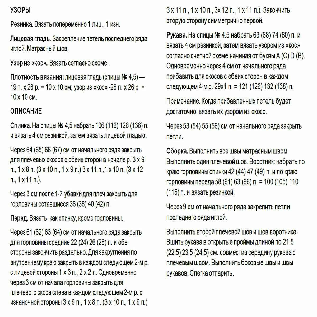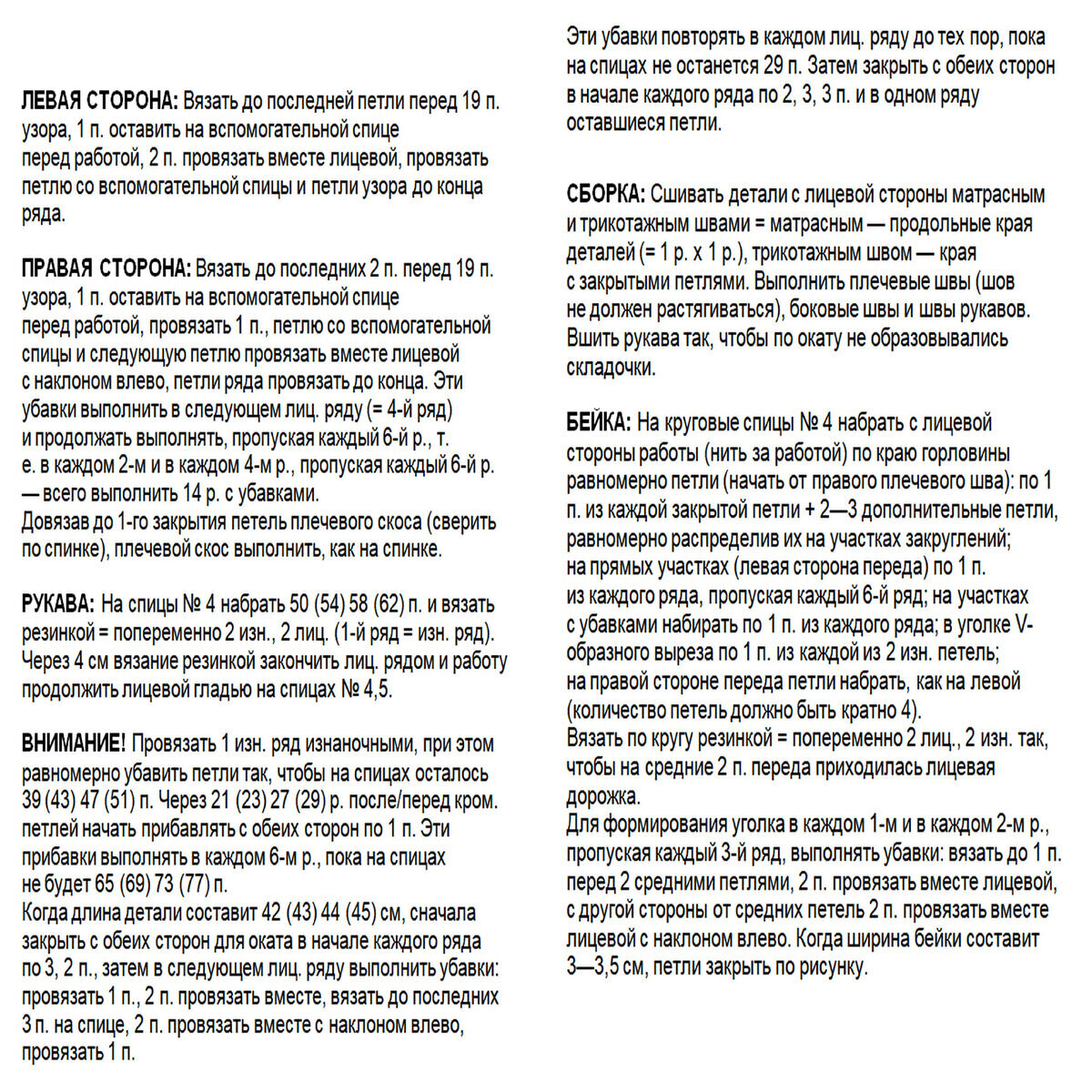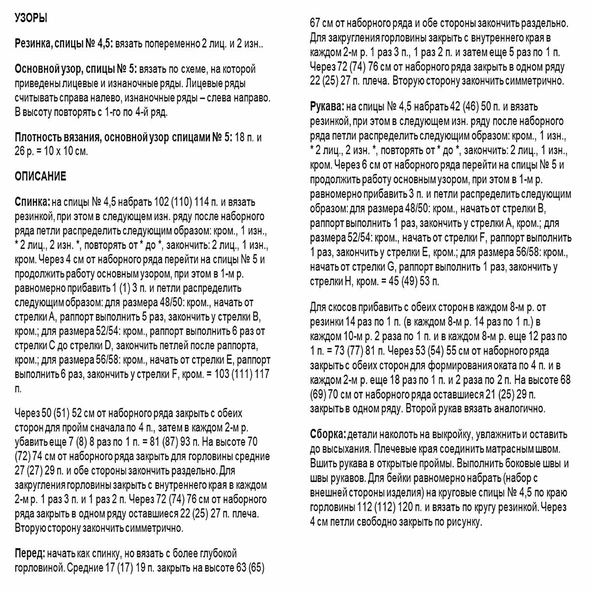 Для широкой резинки 3х3, которая идёт внизу, по горловине и на манжетах, используем спицы № 3,5. Для всего остального — № 4.