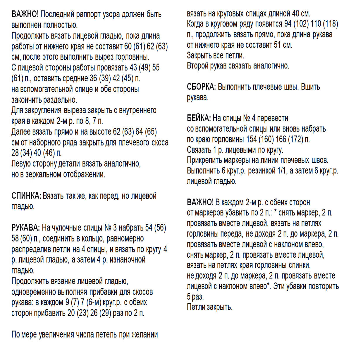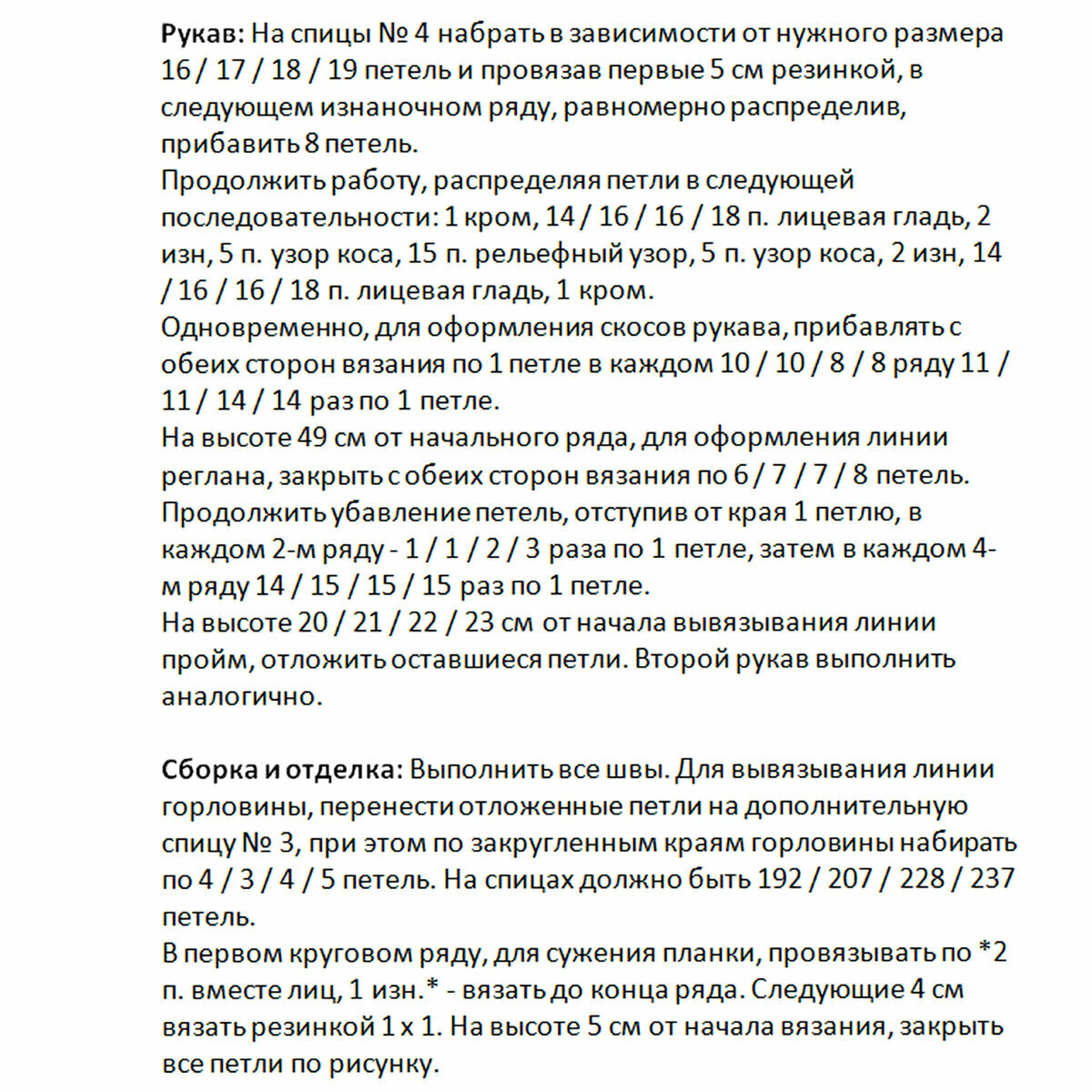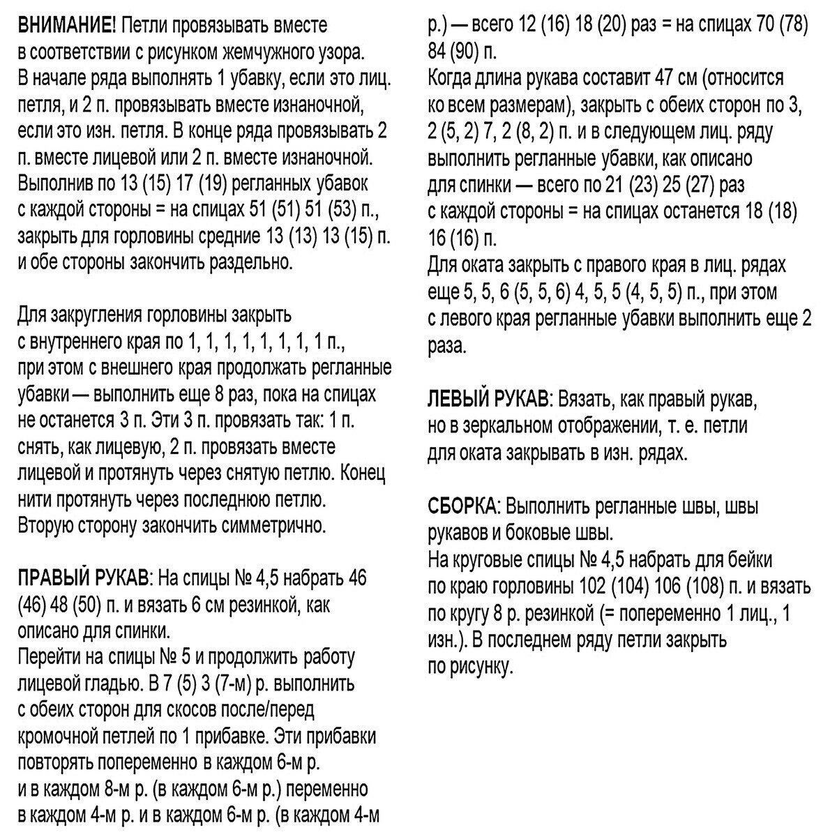 - Длина рукава по внутреннему шву: 47 (48) 49 см