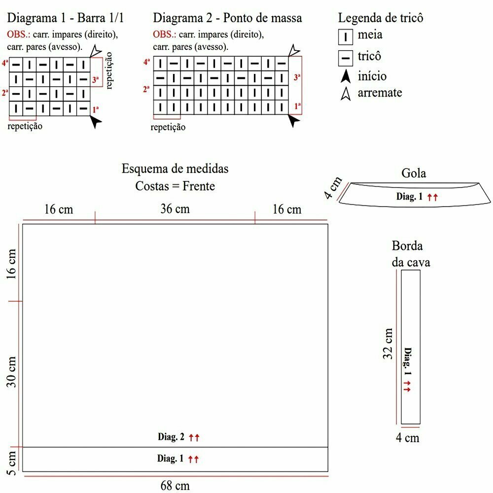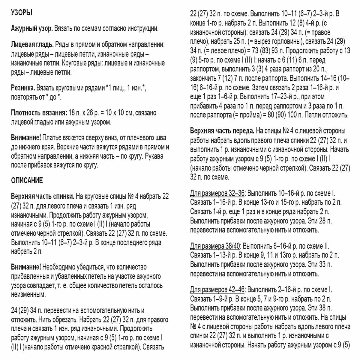 1. В оригинале платочка идёт поперёк. То есть вяжем спереди V-образный вырез, затем набираем по нему петли, берём вспомогательную спицу, набираем петли в высоту и начинаем вязать платочку, подхватывая петли с выреза. То же самое со спинкой, но там мы делаем квадратный вырез и петли набираем только в середине;