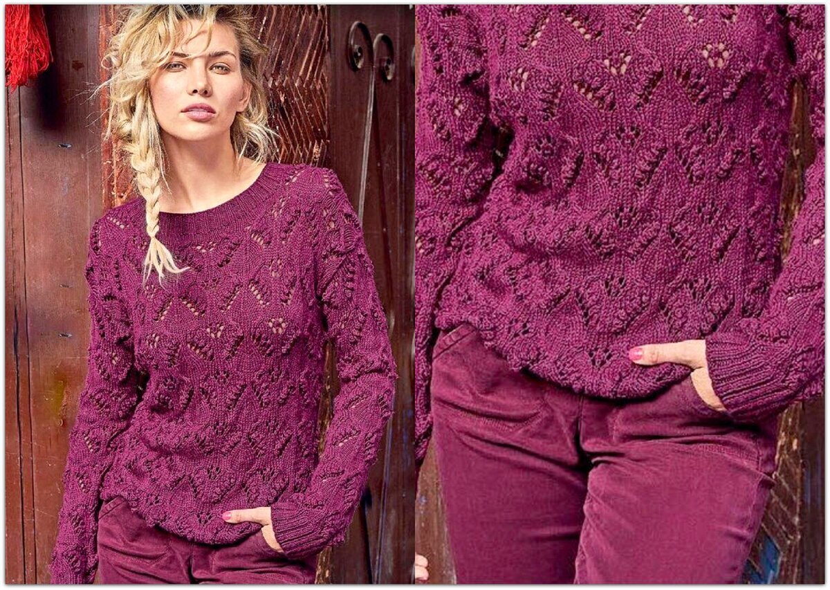 Ажурный джемпер сочного фиолетового цвета из журнала Верена напоминает спелую и сладкую сливу.