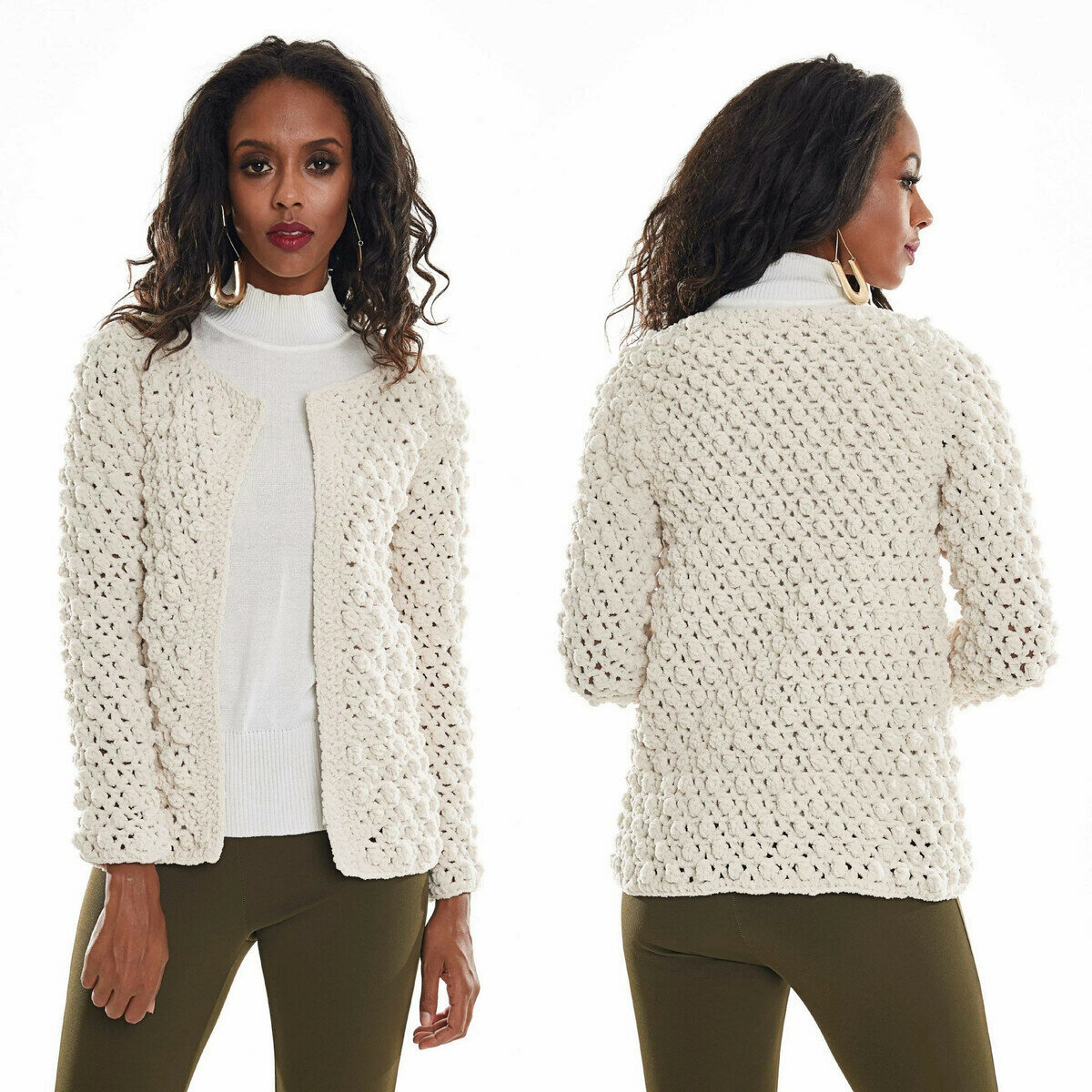 Элегантный молочный кардиган с объёмным узором «попкорн». Уютная модель с эффектом плюша за счёт выбранной мягкой пряжи.