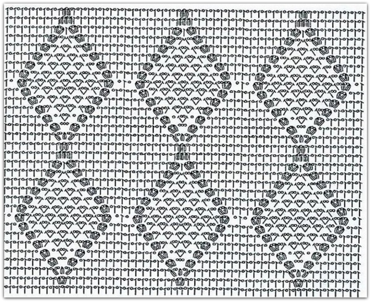 Узор на спинке попроще, но и там оказалось не без сложностей. Я долго вникала в хаотичность накидов (между которыми ещё и изнаночные петли мелькали то там то тут) и решила схему упростить (вот такая я лентяйка).
