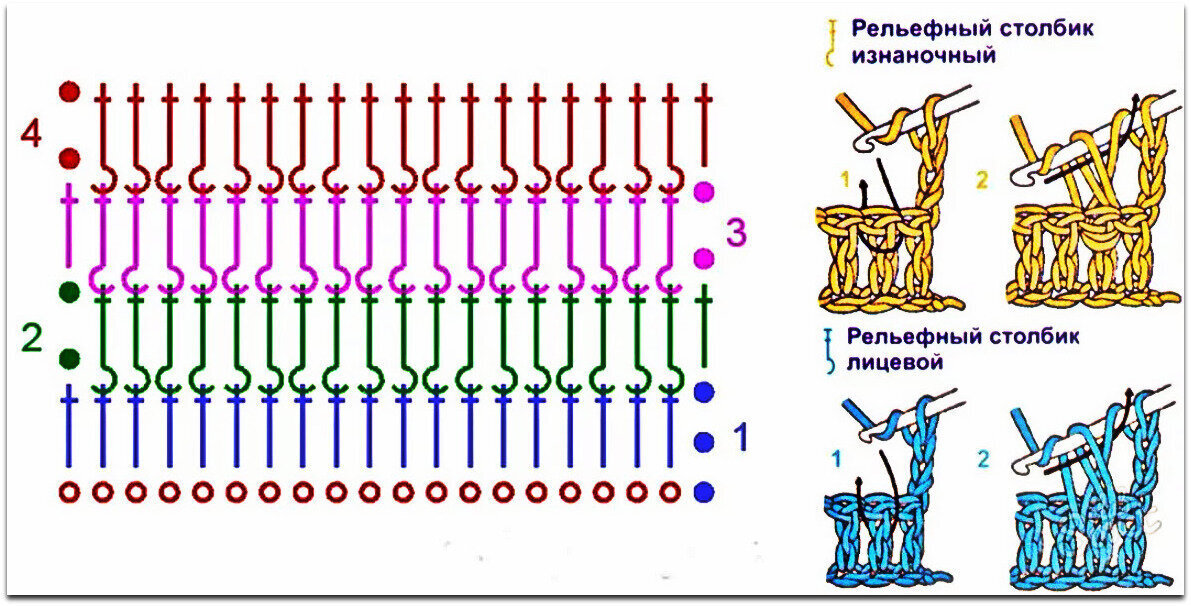 Резинку по низу, на горловине и манжетах можно связать как крючком, так и спицами. Но если вы совсем не вяжете спицами, то вот красивый вариант рельефной резинки.