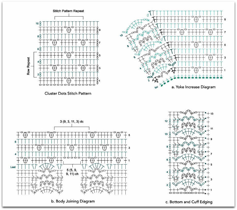 В идеале, конечно, следовало составить полную схему-выкройку, как в японских журналах. Но на это моего терпения и мастерства уже не хватило — тут уж подгоняйте под себя. Основное я вам набросала.