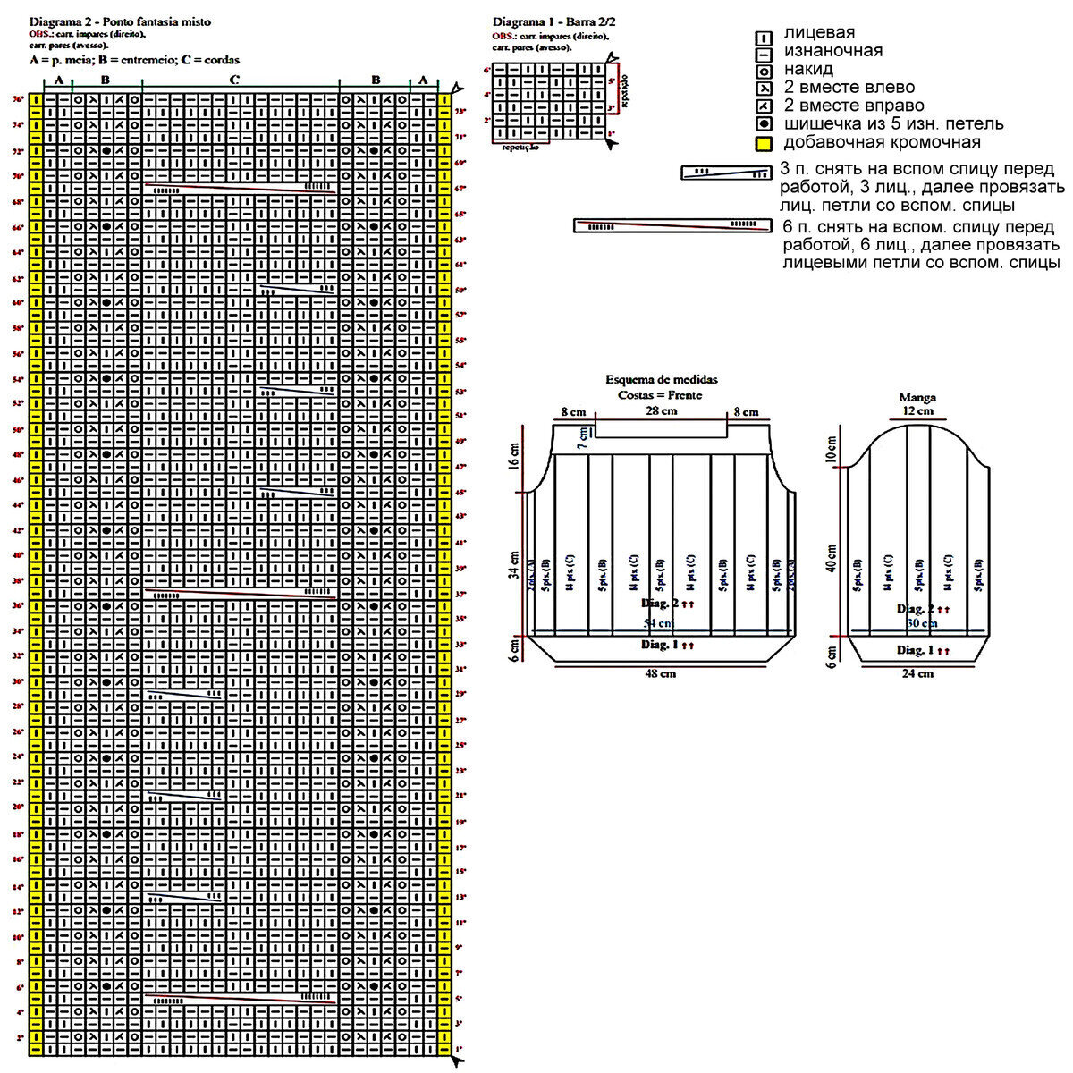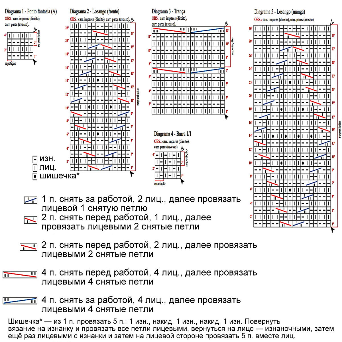 Отделка по низу, манжеты и горловина — резинка из рельефных столбиков с накидом. Последнее фото — увеличенный фрагмент предыдущей схемы, а то там мелковато всё же.