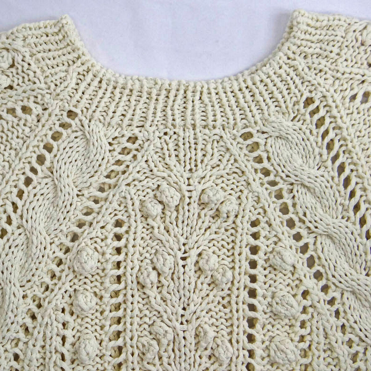 Оригинальный состав свитера — 90% акрил, 10% нейлон. Для лета (которое скоро закончится) и будущей осени рекомендую брать хлопок с акрилом, хлопок с вискозой, шерсть с акрилом.