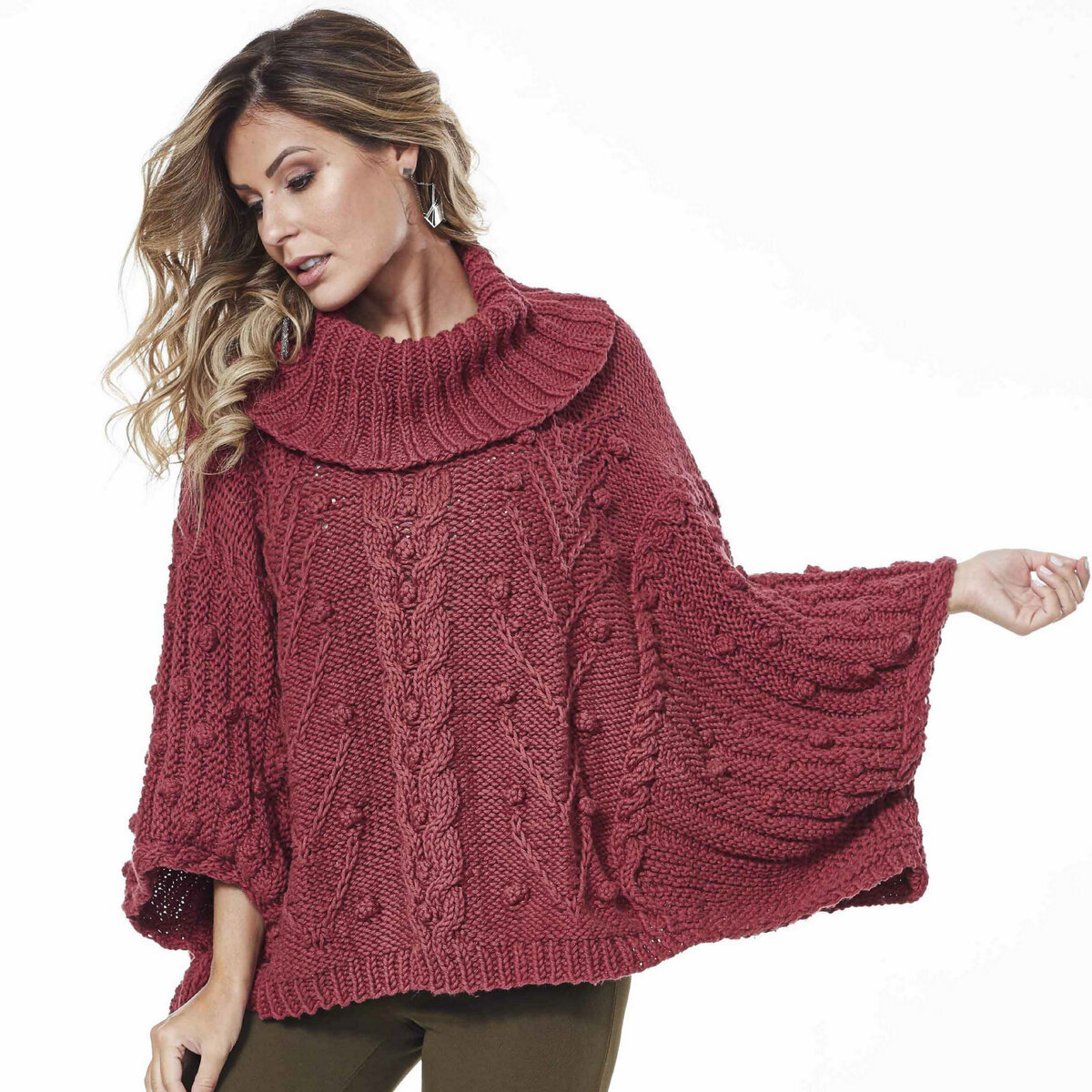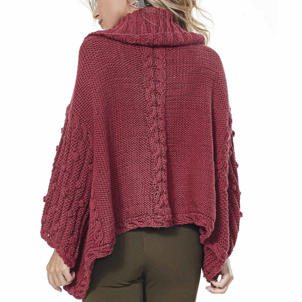 Бордовый свитер-пончо с объёмным узором из шишечек и жгутов. Стильная модель оверсайз, которая может заменить лёгкую куртку осенью. Широкий ворот-хомут согреет лучше шарфа!