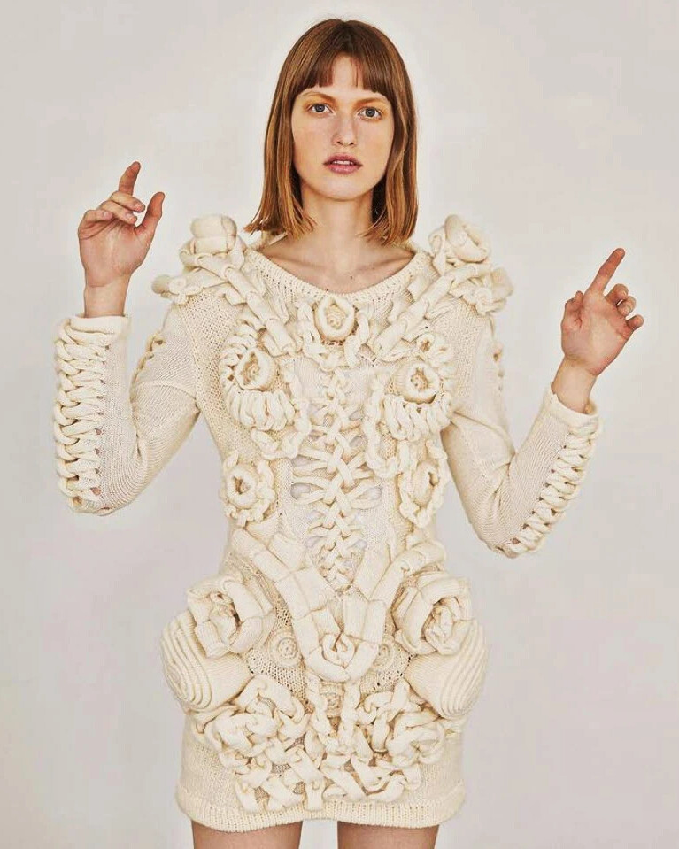 Да, такие творения явно не для обычных смертных. Собственно, и сам дизайнер Motohiro Tanji не пытается выдать свои трикотажные шедевры за последний писк моды. Скорее наоборот, утверждает, что его вязание — это его видения.