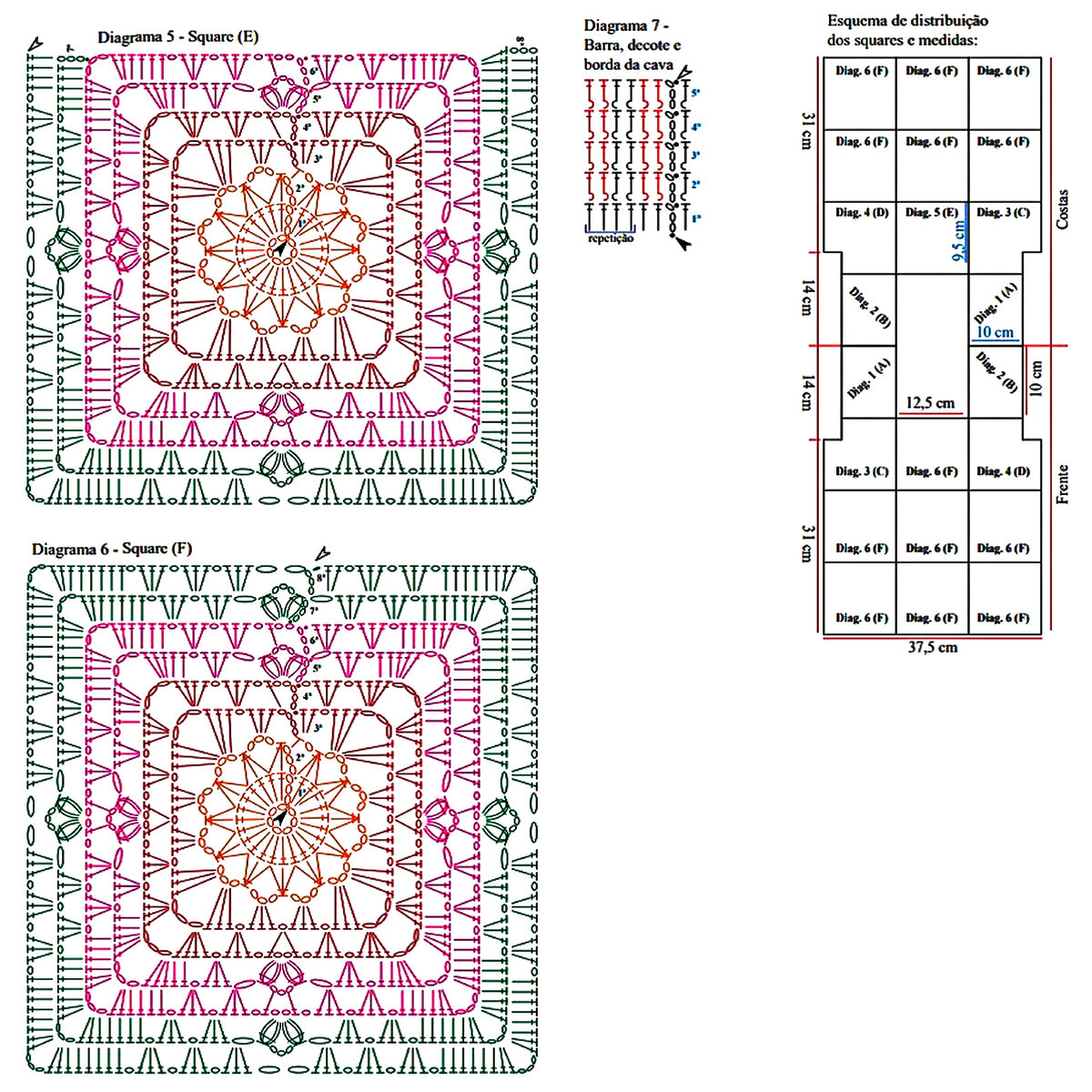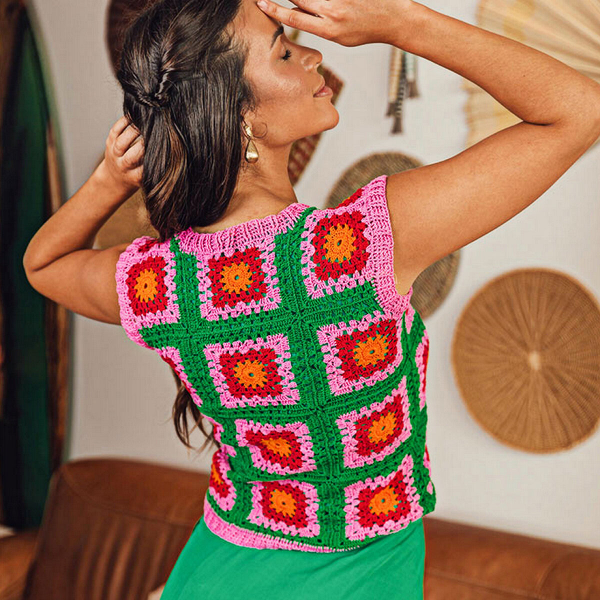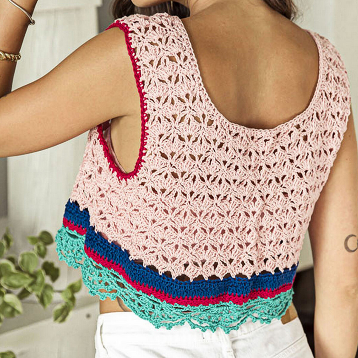 Укороченный топ на тонкий лямочках, с застёжками на спине. Ещё одна сочная модель из простых квадратных мотивов!