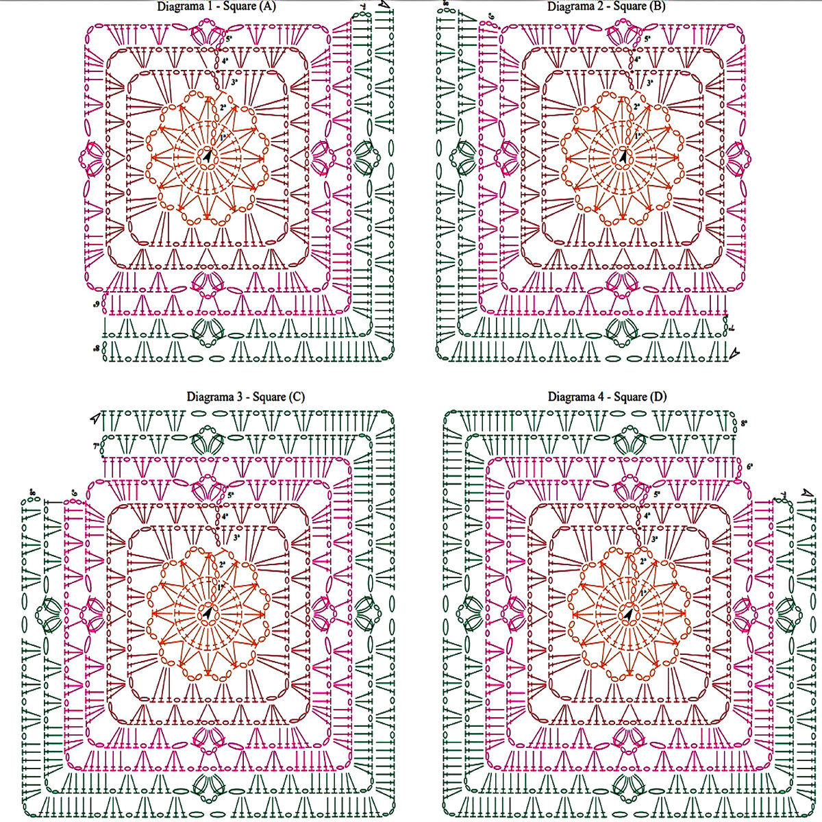 Яркие бабушкины квадраты вне моды! Сочетание сочно-зелёного, розового, красного и оранжевого создаёт ощущение летних цветов на зелёном лугу.