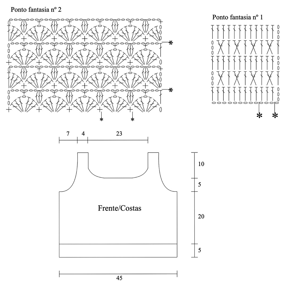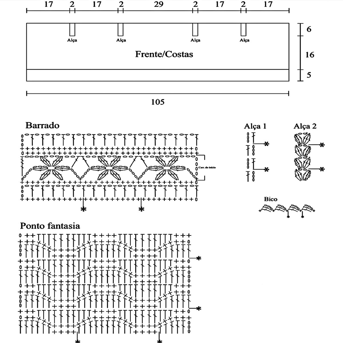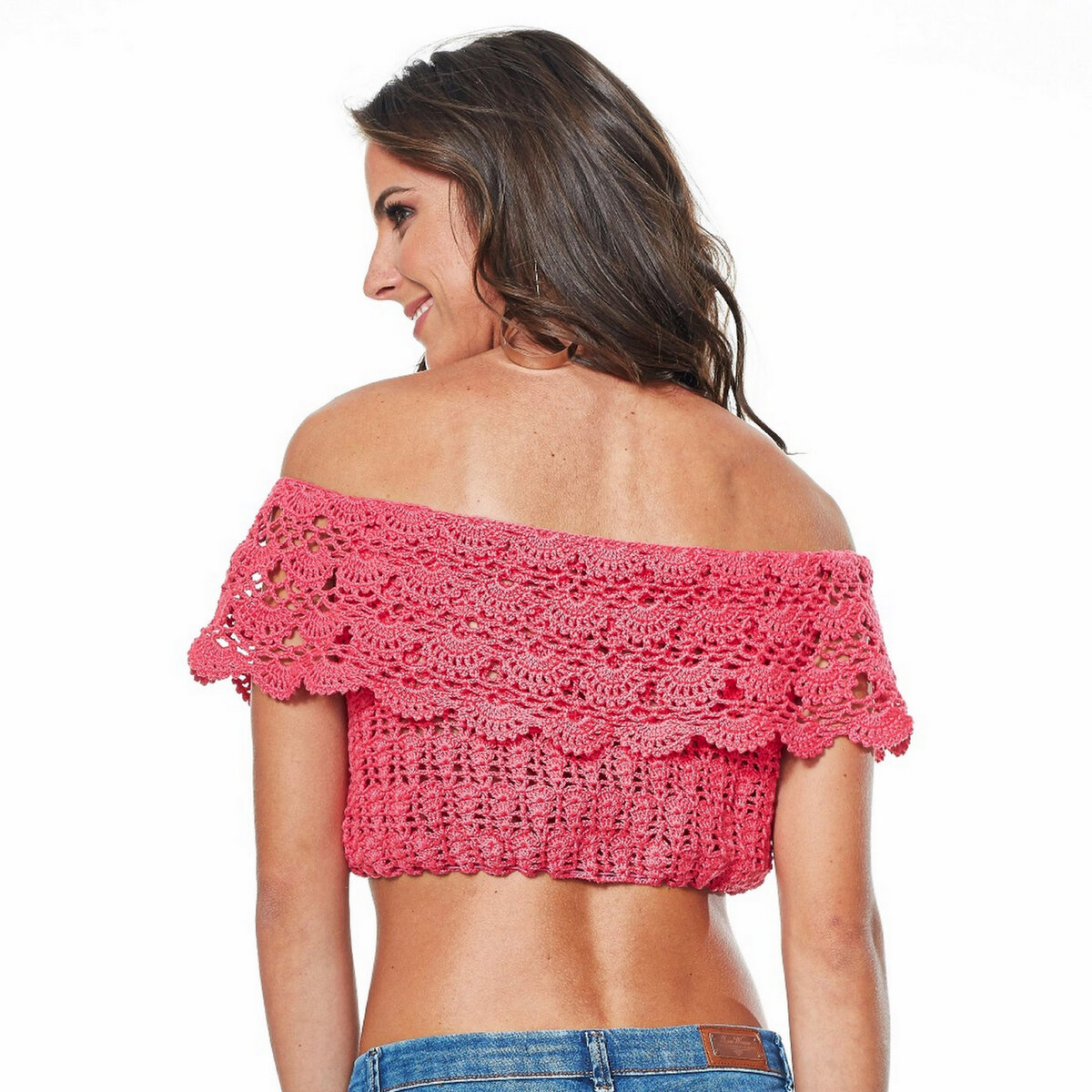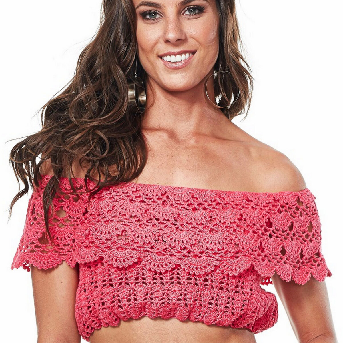 Несложные и нарядные топики крючком — от 44 до 52 размера. 7 разнообразных женских моделей с описанием, выкройками и схемами вязания в хорошем качестве.
